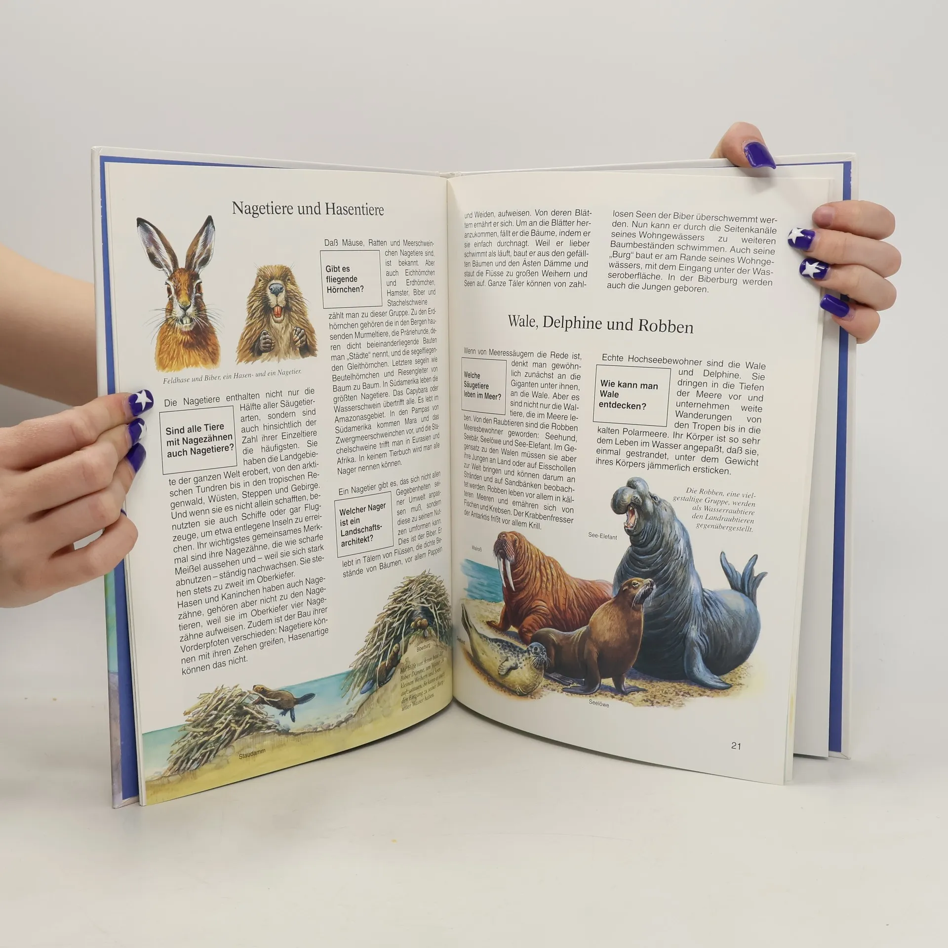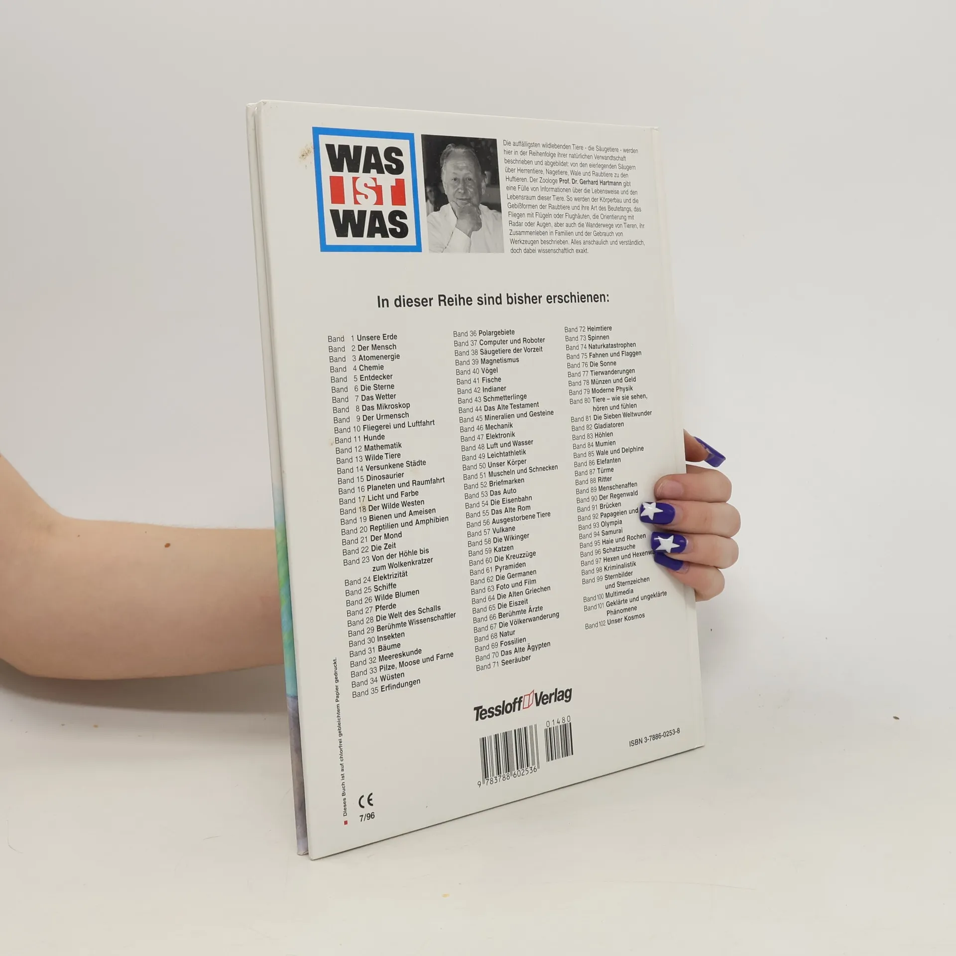 Die bekanntesten wild lebenden Tiere – die Säugetiere – sind hier in der Reihenfolge ihrer natürlichen Verwandtschaft beschrieben und abgebildet: von den Eier legenden Säugern über Affen und Menschenaffen, Nagetiere, Wale und Raubtiere bis hin zu den Huftieren. Der Zoologe Prof. Dr. Gerhard Hartmann gibt eine Fülle von Informationen über Lebensraum und Lebensweise, über Körperbau, Beutefang, Familienleben und vieles mehr. Er erklärt, wie Fledermäuse im Dunkeln nach Insekten jagen und wie der Biber seine Dämme baut, woran man ein Raubtier erkennt und warum Giraffen so lange Hälse haben. Wissenschaftlich exakt und dabei leicht verständlich geschrieben, vermittelt dieses Buch einen Einblick in die faszinierende Welt der Tiere.