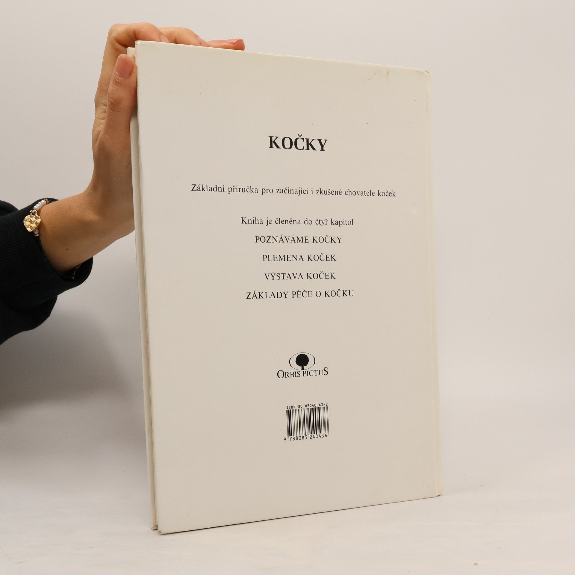 Základní příručka pro začínající i zkušené chovatele koček. Je členěna do čtyř kapitol - Poznáváme kočku, Plemena koček, Výstavy koček a Základy péče o kočku. 130 barevných fotografií, 40 barevných a 30 černobílých ilustrací.