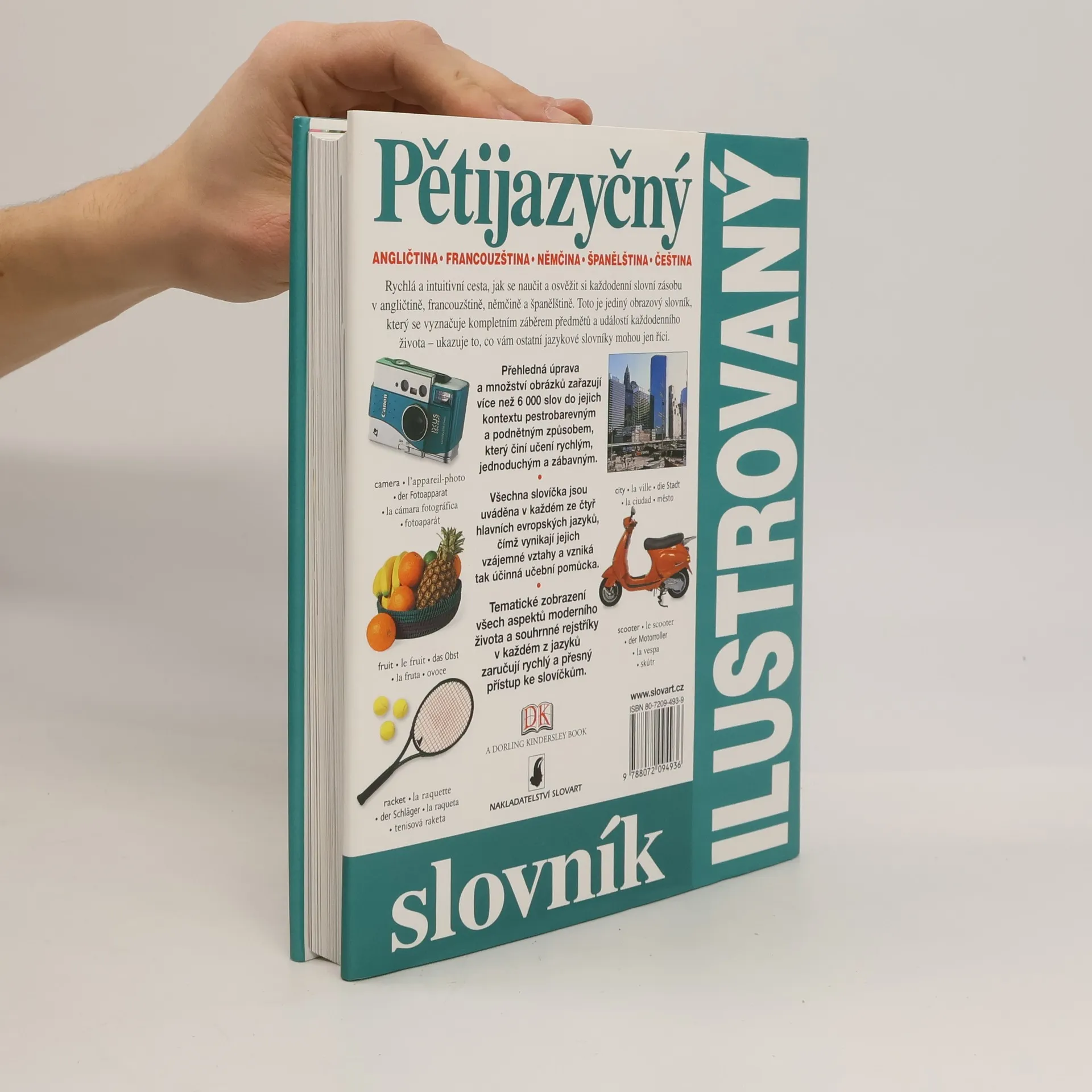 Obrazy pomáhají přijímat informace a rozumět jim. Na tomto principu je založen tento bohatě ilustrovaný slovník, který obsahuje širokou škálu užitečných výrazů v pěti jazycích (angličtina, francouzština, němčina, španělština, čeština). Slovník je rozdělen tematicky a pokrývá detailně většinu odvětví každodenního života, od restaurace po tělocvičnu, od domova po pracoviště, od vesmíru po svět zvířat. Každý jazyk má na konci knihy svůj vlastní rejstřík, ve kterém lze slovíčko vyhledat a podle čísla stránky zjistit, kde se nachází.