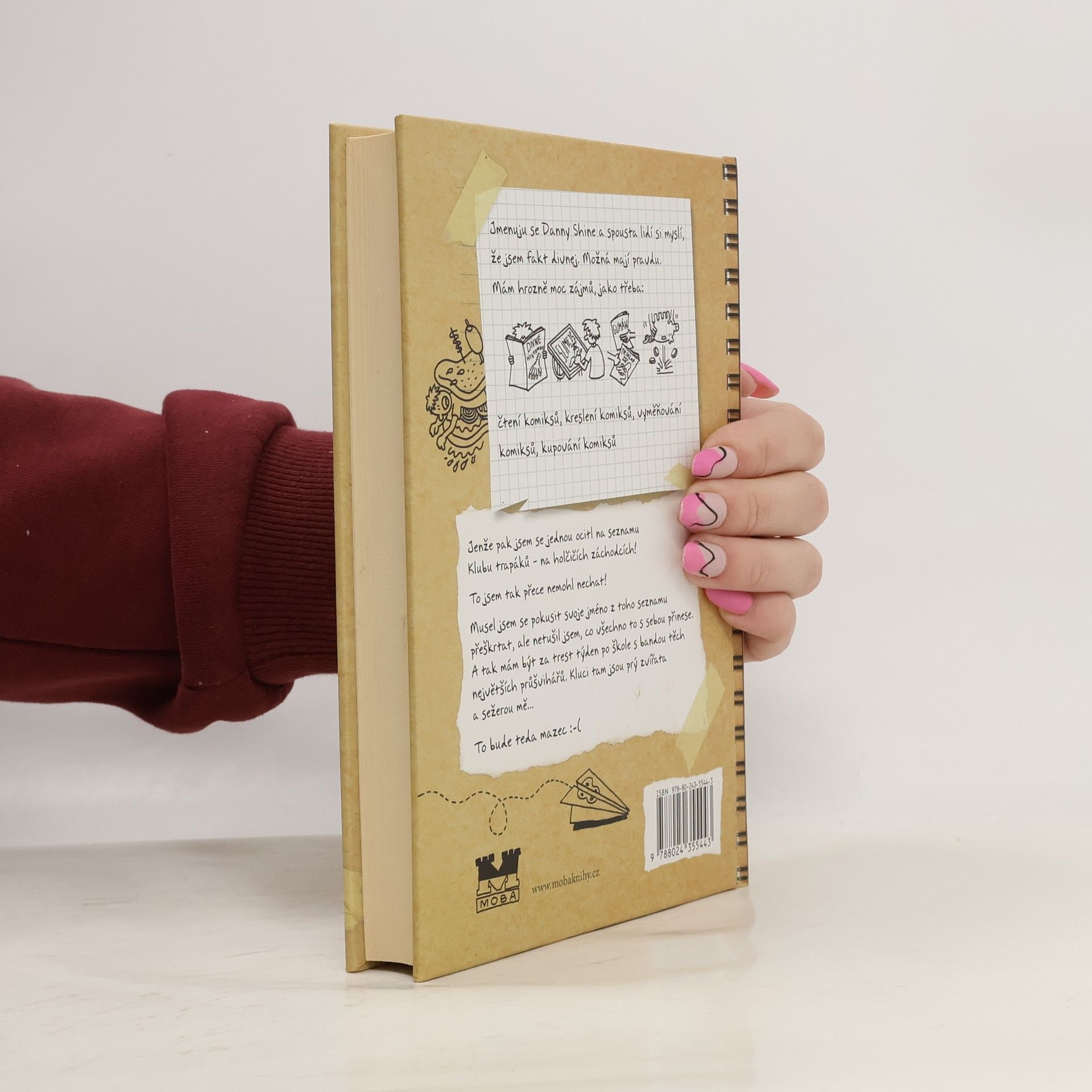 Jmenuju se Danny Shine a spousta lidí si myslí, že jsem fakt divnej. Možná mají pravdu. Mám hrozně moc zájmů, jako třeba: čtení komiksů, kreslení komiksů, vyměňování komiksů, kupování komiksů. Jenže pak jsem se jednou ocitl na seznamu Klubu trapáků – na holčičích záchodcích! To jsem tak přece nemohl nechat! Musel jsem se pokusit svoje jméno z toho seznamu přeškrtat, ale netušil jsem, co všechno to s sebou přinese. A tak mám být za trest týden po škole s bandou těch největších průšvihářů. Kluci tam jsou prý zvířata... To bude mazec. :-(