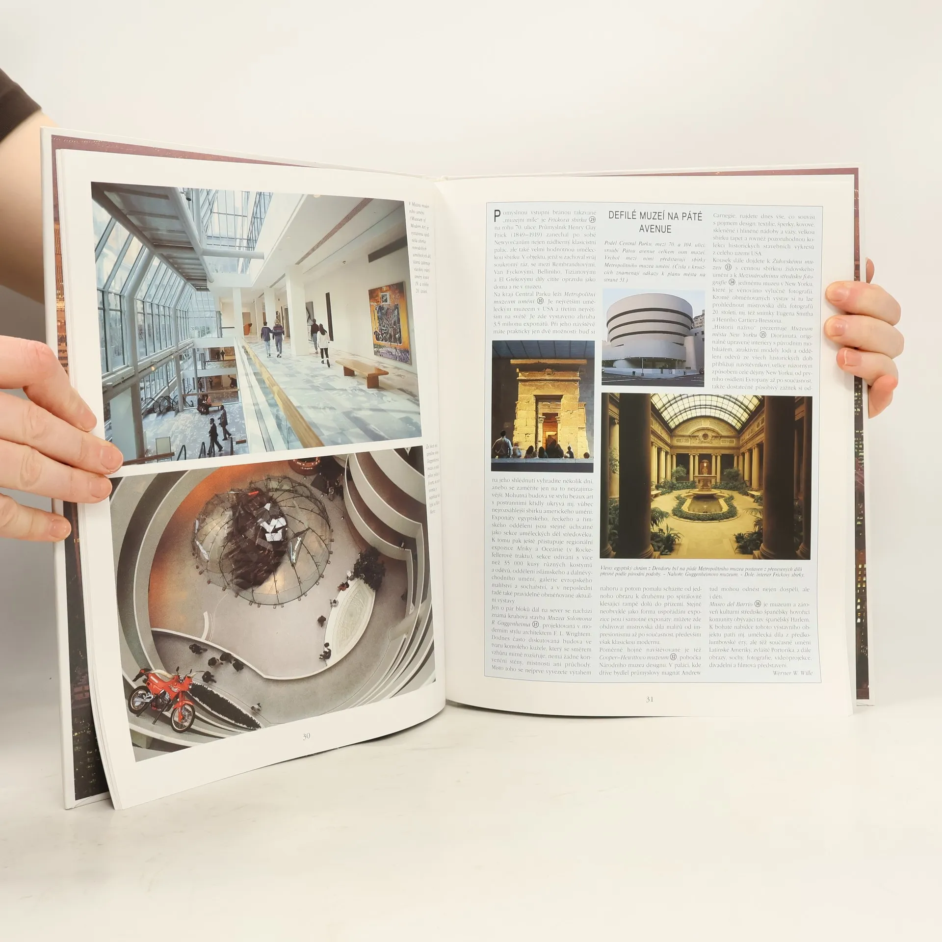 Obrazová publikace doplněná textem, který využívá faktografii jako prostředek k postižení atmosféry největšího amerického města. Součástí publikace je stručný průvodce.Publikace nabízí jen opravdu základní rady a informace o ubytování, dopravě, pozoruhodných místech či kulturních událostech a akcích.Dva orientační plánky (Manhattan, Brooklyn) mají nevhodná měřítka.
