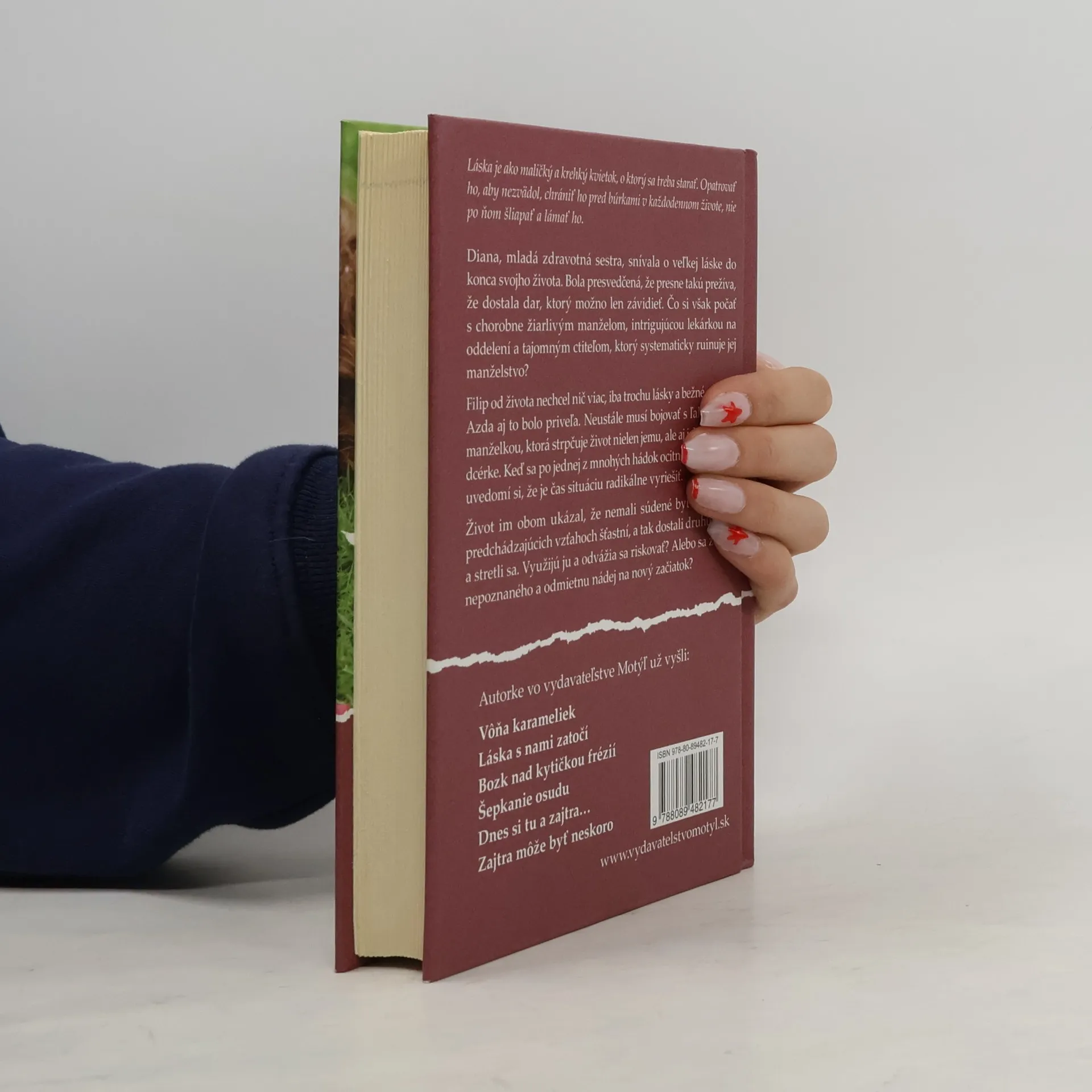 Láska je ako maličký a krehký kvietok, o ktorý sa treba starať. Opatrovať ho, aby nezvädol, chrániť ho pred búrkami v každodennom živote, nie po ňom šliapať a lámať ho. Diana, mladá zdravotná sestra, snívala o veľkej láske do konca svojho života. Bola presvedčená, že presne takú prežíva, že dostala dar, ktorý možno len závidieť. Čo si však počať s chorobne žiarlivým manželom, intrigujúcou lekárkou na oddelení a tajomným ctiteľom, ktorý systematicky ruinuje jej manželstvo? Filip od života nechcel nič viac, iba trochu lásky a bežné starosti. Azda aj to bolo priveľa. Neustále musí bojovať s ľahostajnou manželkou, ktorá strpčuje život nielen jemu, ale aj ich spoločnej dcérke. Keď sa po jednej z mnohých hádok ocitne v nemocnici, uvedomí si, že je čas situáciu radikálne vyriešiť. Život im obom ukázal, že nemali súdené byť vo svojich predchádzajúcich vzťahoch šťastní, a tak dostali druhú šancu a stretli sa. Využijú ju a odvážia sa riskovať? Alebo sa zľaknúnepoznaného a odmietnu nádej na nový začiatok?