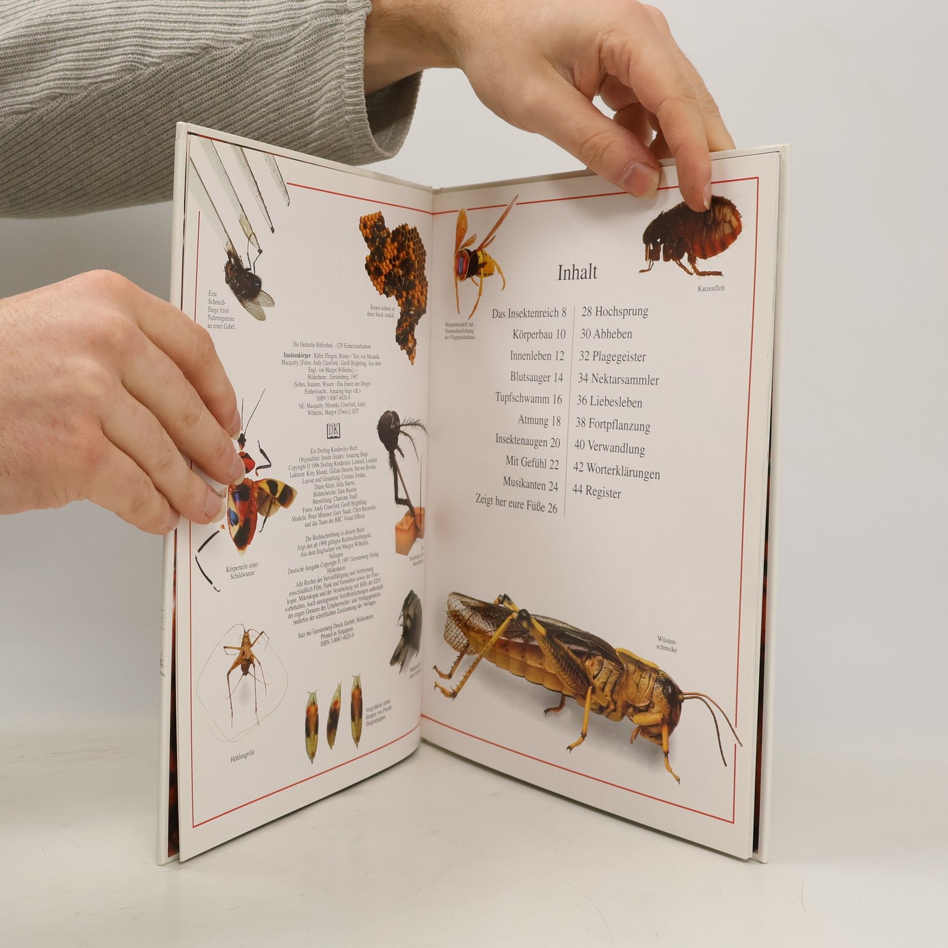 Außer in der Tiefsee gibt es überall auf der Erde Insekten. Inzwischen sind über eine Million verschiedene Arten bekannt. Dieser Band veranschaulicht in einzigartigen Modellen und Fotos, wie Insekten atmen, Nahrung aufnehmen und sich fortpflanzen, und er erklärt, warum einige Insekten riesige Komplexaugen haben, andere mit ihren Fühlern Gerüche wahrnehmen können und Laubheuschrecken mit ihren Beinen sogar hören können.