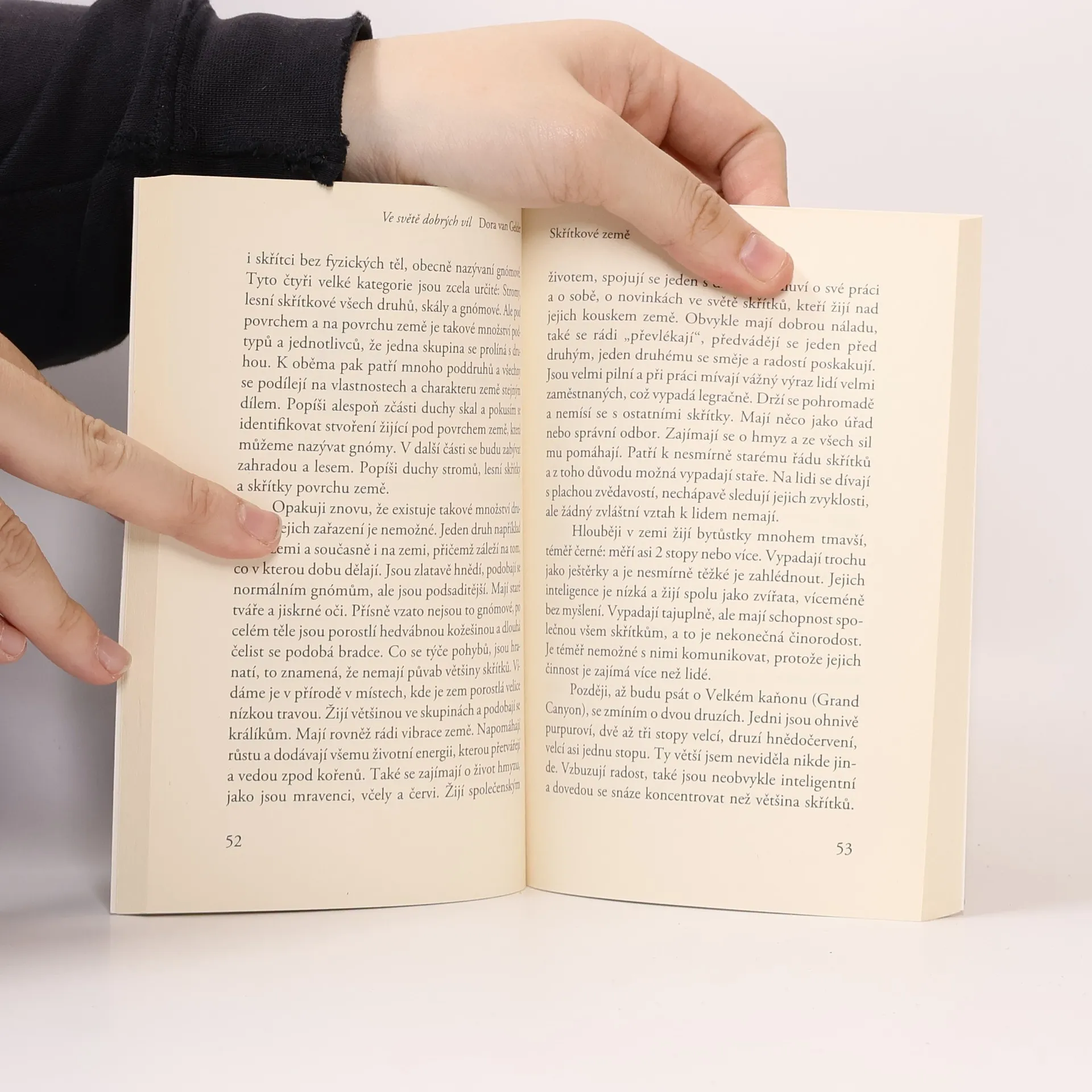 V této knize nás autorka provází fascinujícím světem skřítků - popisuje mnoho druhů skřítků na základě osobní zkušenosti a vysvětluje, proč je schopná je vidět a někdy s nimi i komunikovat. Přestože jsou tyto malé bytůstky spojovány především se šťastnými chvílemi dětství, autorka knihy Ve světě dobrých víl dodává, že svět skřítků není pouhou její imaginací, ale že je skutečný.