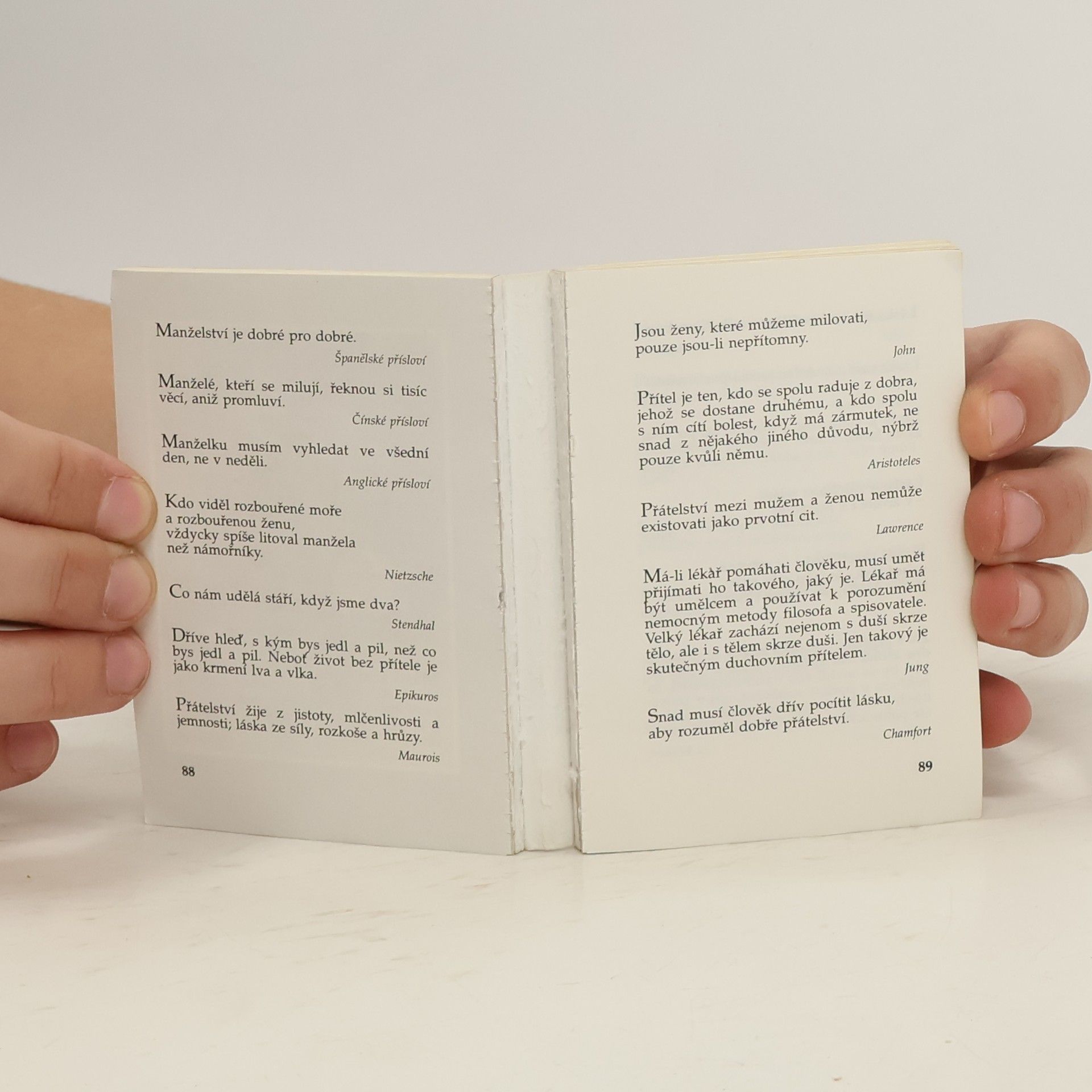 Tato knížka je výběrem citátů a myšlenek, které utkví v paměti svojí moudrostí a hloubkou poznání, stejně jako část románu nebo věta z verše, které nás budou s dílem vždy spojovat a jsou milejší než ostatní text. Svérázný výběr i netradiční uspořádání vychází ze zaměření na ten okruh čtenářů, kteří uplatňují potřebu samostatně myslet a nepočítají s tím, že by je někdo vodil za ruku. Právě k těm si myšlenka stejně jako naše kniha najde cestu sama. Rozměr knihy 7 x 10 cm.
