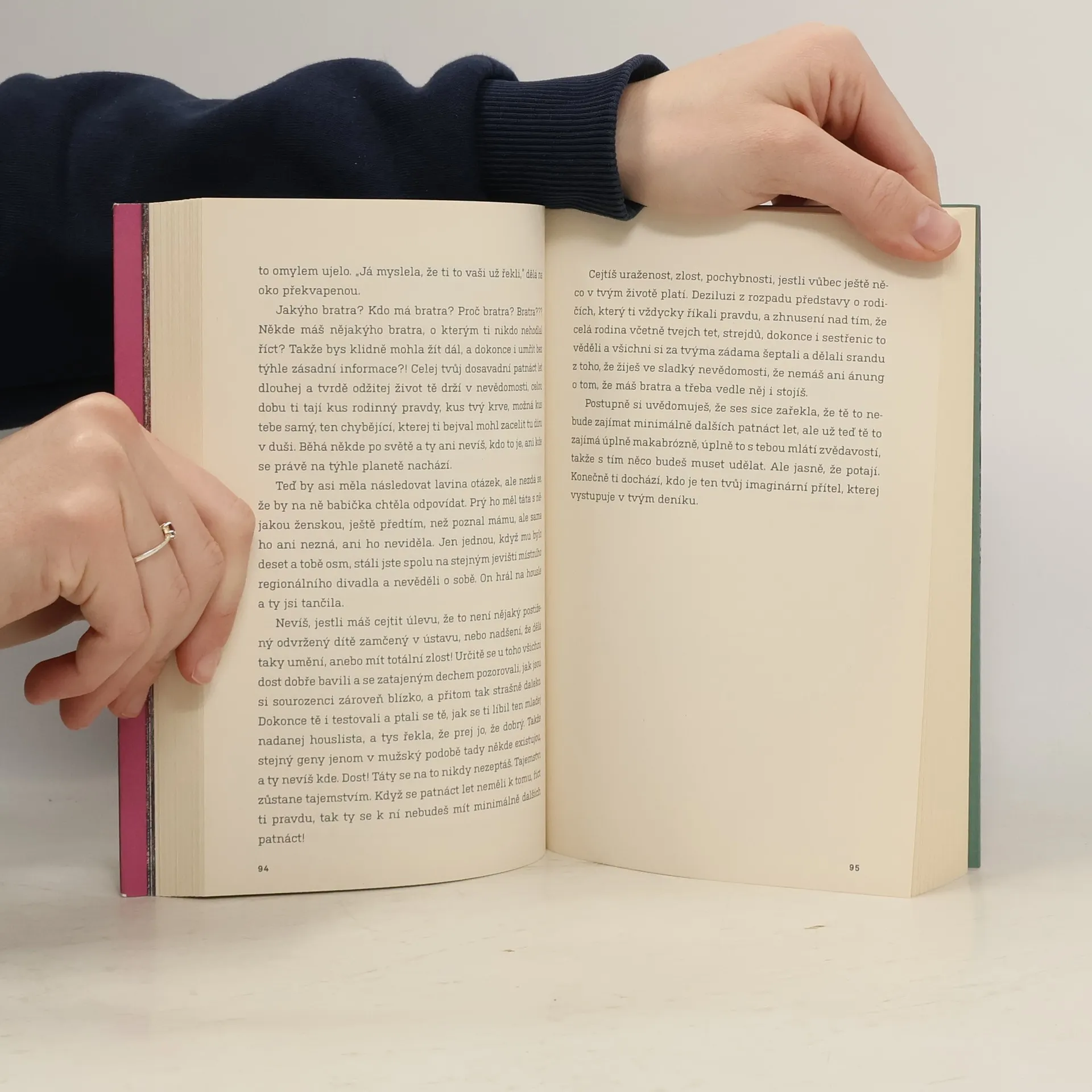 Baletky mají dvě tváře. Tu přední, usměvavou a dokonalou, kterou vidí publikum. A pak tu odvrácenou, když zmizí za oponou, předpisový úsměv jim spadne a tvář se zkřiví do ztrhaného šklebu, protože se dusí. Při tanci totiž nemůžou dýchat pusou. Třeští oči a lapají po dechu. Kdyby baletky někdo takhle nafilmoval, byla by to přehlídka utrpení. K tomu jsou ale trénované. Tak jako hlavní hrdinka tohohle příběhu. Každý den zažívá baletní dril jako v armádě. Ještě jí nebylo čtrnáct, a už je odbornicí na používání projímadel a zvracení, aby si udržela váhu, na ošetřování krvavých palců a stahování prsou. A do toho poznává klubový život v Praze. Jsou devadesátá léta, frčí perník a extáze a ona objevuje sex a zjišťuje, že má nevlastního bratra, který je úplně jiný, než by chtěla. A že její sen stát se baletkou a tančit ve Zlaté kapličce se mění v noční můru. Režisérka a tanečnice Miřenka Čechová vychází z vlastních zkušeností a deníkových zápisků. Její próza je sebeironickým, syrovým a nelítostným obrazem studií na Taneční konzervatoři a pražského života v divokých 90. letech.