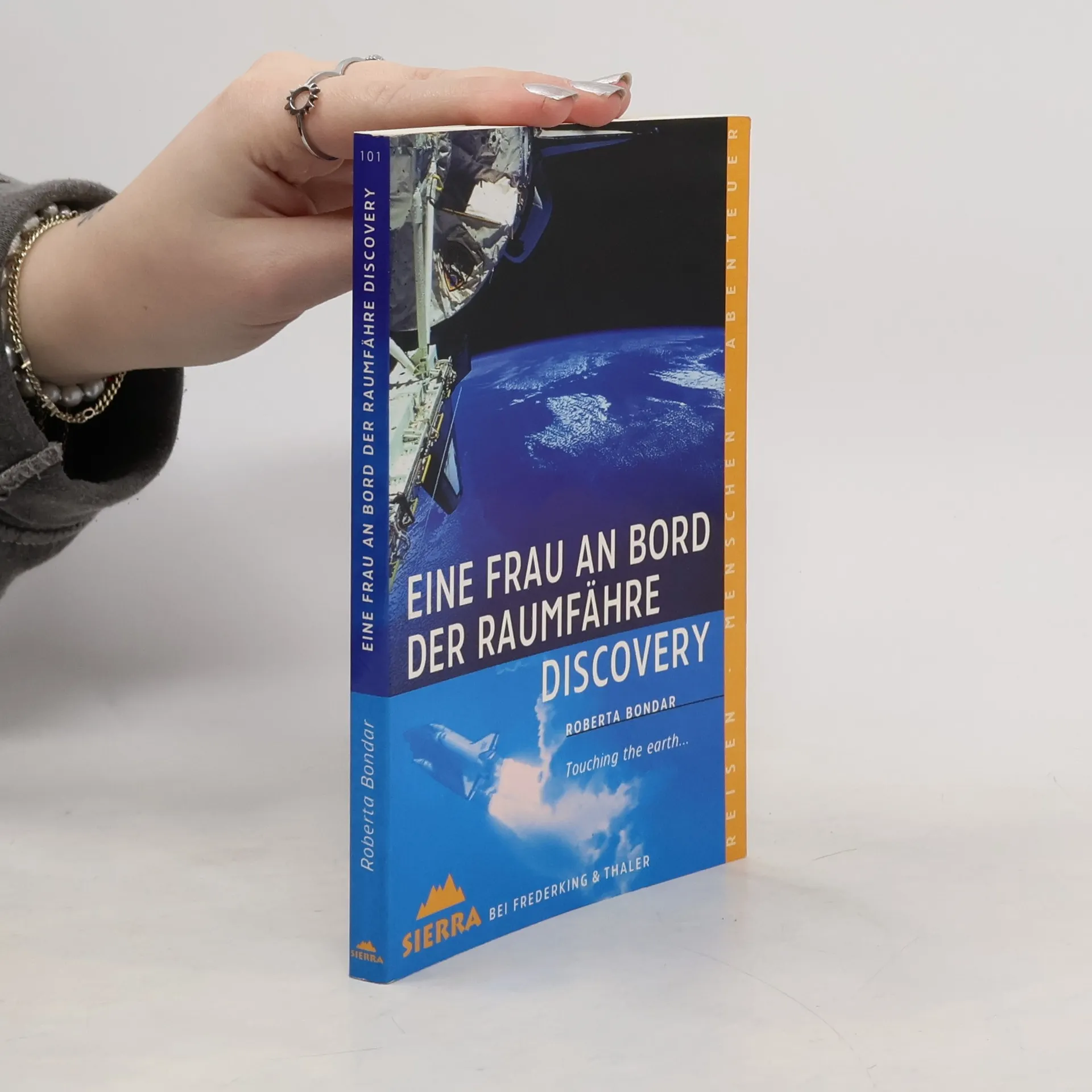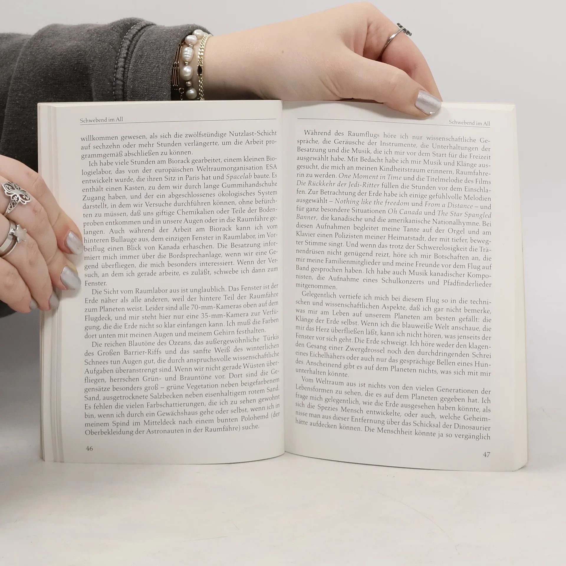 Eine Frau an Bord der Raumfähre Discovery