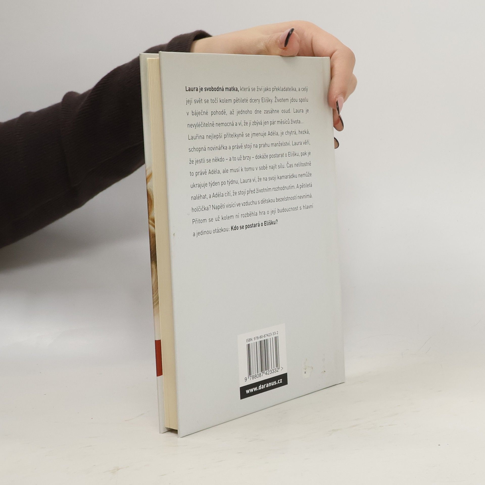 Laura je svobodná matka, která se živí jako překladatelka, a celý její svět se točí kolem pětileté dcery Elišky. Životem jdou spolu v báječné pohodě, až jednoho dne zasáhne osud. Laura je nevyléčitelně nemocná a ví, že jí zbývá jen pár měsíců života... Lauřina nejlepší přítelkyně se jmenuje Adéla, je chytrá, hezká, schopná novinářka a právě stojí na prahu manželství. Laura věří, že jestli se někdo - a to už brzy - dokáže postarat o Elišku, pak je to právě Adéla, ale musí k tomu v sobě najít sílu. Čas nelítostně ukrajuje týden po týdnu, Laura ví, že na svoji kamarádku nemůže naléhat, a Adéla cítí, že stojí před životním rozhodnutím. A pětiletá holčička? Napětí visící ve vzduchu s dětskou bezelstností nevnímá. Přitom se už kolem ní rozběhla hra o její budoucnost s hlavní a jedinou otázkou: Kdo se postará o Elišku? Lucie Müllerová, jedna z autorek knižního hitu My, sex a podpatky, vypráví příběh o síle mateřské lásky s mimořádnou empatií. Jako publicistka, která se zabývá mezilidskými vztahy a osudy žen v mezních životních situacích, má ostatně s podobnými tématy přímé zkušenosti. Osudy hrdinek románu ...a postarej se o Elišku jsou založeny na skutečných událostech.