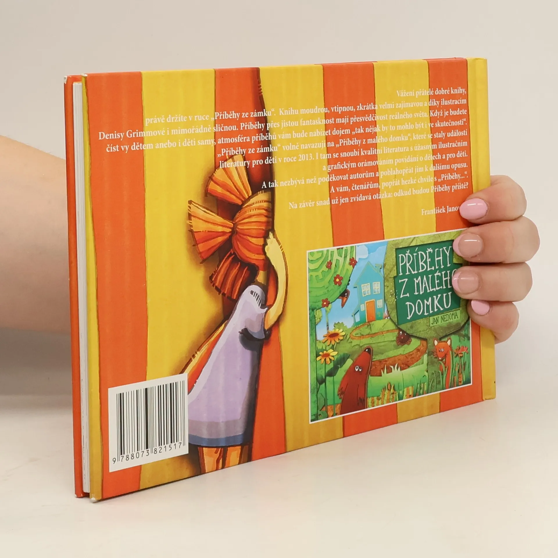 Vážení přátelé dobré knihy, právě držíte v ruce „Příběhy ze zámku“. Knihu moudrou, vtipnou, zkrátka velmi zajímavou a díky ilustracím Denisy Grimmové i mimořádně sličnou. Příběhy přes jistou fantasknost mají přesvědčivost reálného světa. Když je budete číst vy dětem anebo i děti samy, atmosféra příběhů vám bude nabízet dojem „tak nějak by to mohlo být i ve skutečnosti“. „Příběhy ze zámku“ volně navazují na „Příběhy z malého domku“, které se staly událostí literatury pro děti v roce 2013. I tam se snoubí kvalitní literatura s úžasným ilustračním a grafickým orámováním povídání o dětech a pro děti. A tak nezbývá než poděkovat autorům a poblahopřát jim k dalšímu opusu. A vám, čtenářům, popřát hezké chvíle s „Příběhy...“. Na závěr snad už jen zvídavá otázka: odkud budou Příběhy příště?