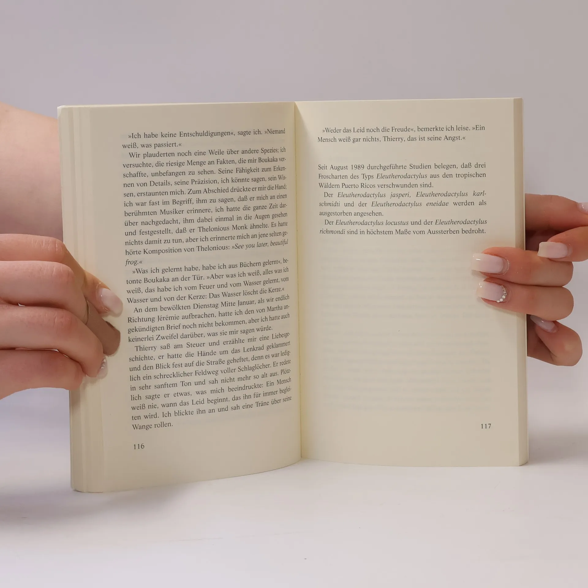 Ein amerikanischer Forscher und sein einheimischer Führer suchen in den unzugänglichen Bergen Haitis nach einem mysteriösen Frosch, dem vielleicht weltweit letzten Exemplar der Spezies. In einer von Gefahr und Gewalt erfüllten Atmosphäre versucht der eine, den gesunden Menschenverstand walten zu lassen, während für den anderen alles Unheimliche und Unerklärliche seinen festen Platz in der Ordnung der Welt hat.