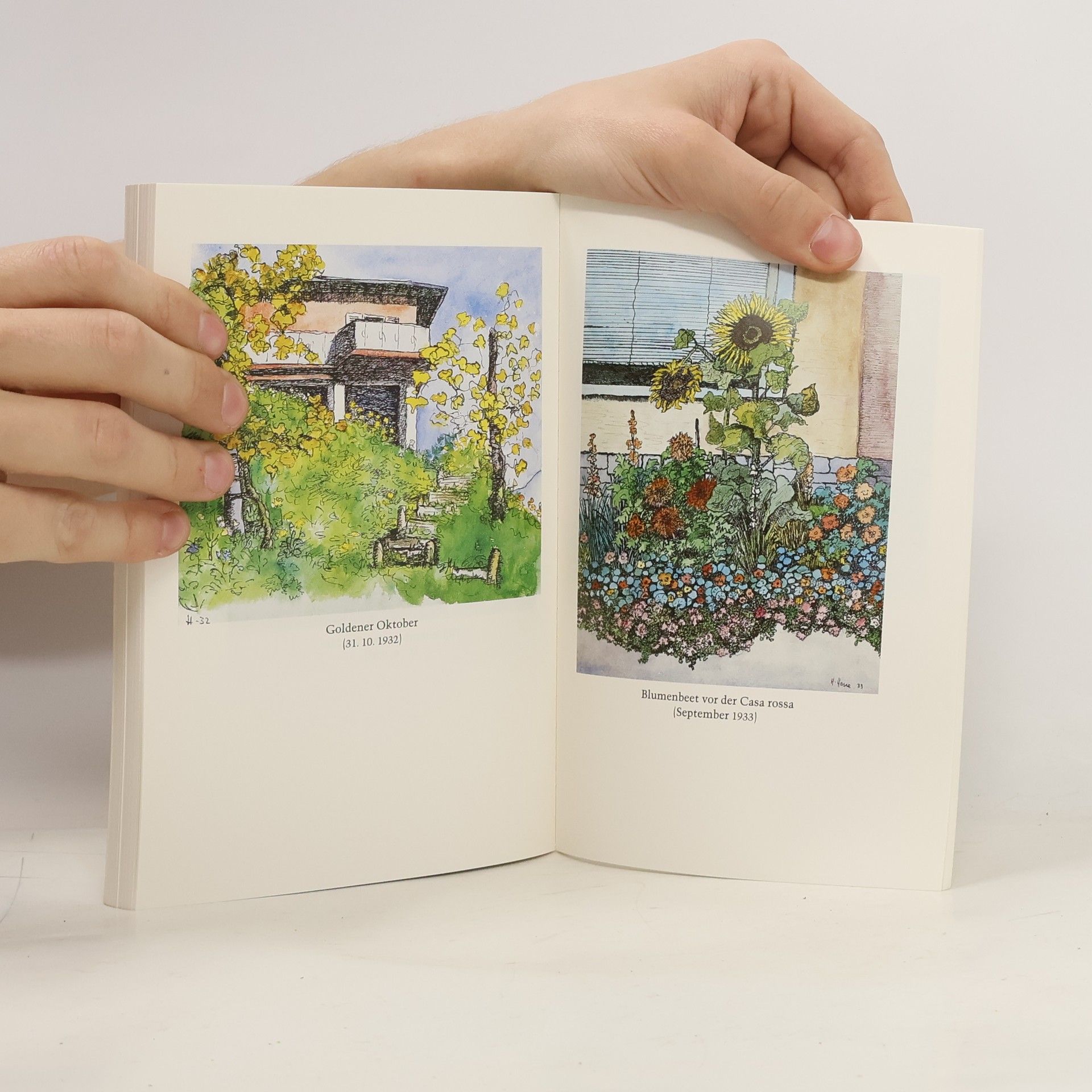 Seit seinen autodidaktischen Anfängen im Ersten Weltkrieg, die dem damals Vierzigjährigen eine schwere Krise zu überwinden halfen, hat Hesse bis ins hohe Alter etwa zweitausend Aquarelle gemalt. Die meisten von ihnen sind Liebeserklärungen an die farbenfrohen Landschaften seiner Tessiner Wahlheimat und ihren damals noch unerschöpflichen Reichtum an zauberhaften Motiven.