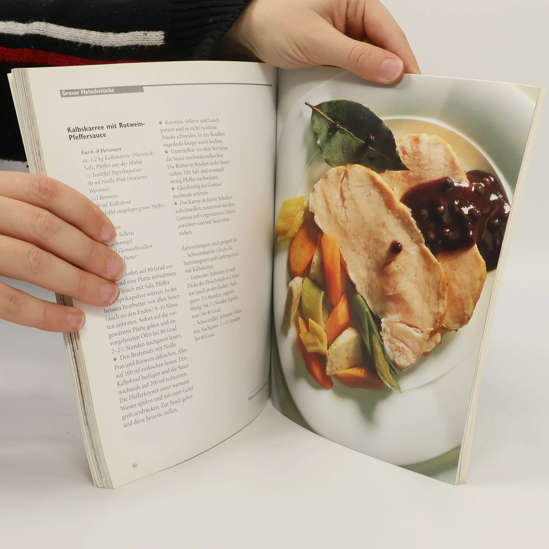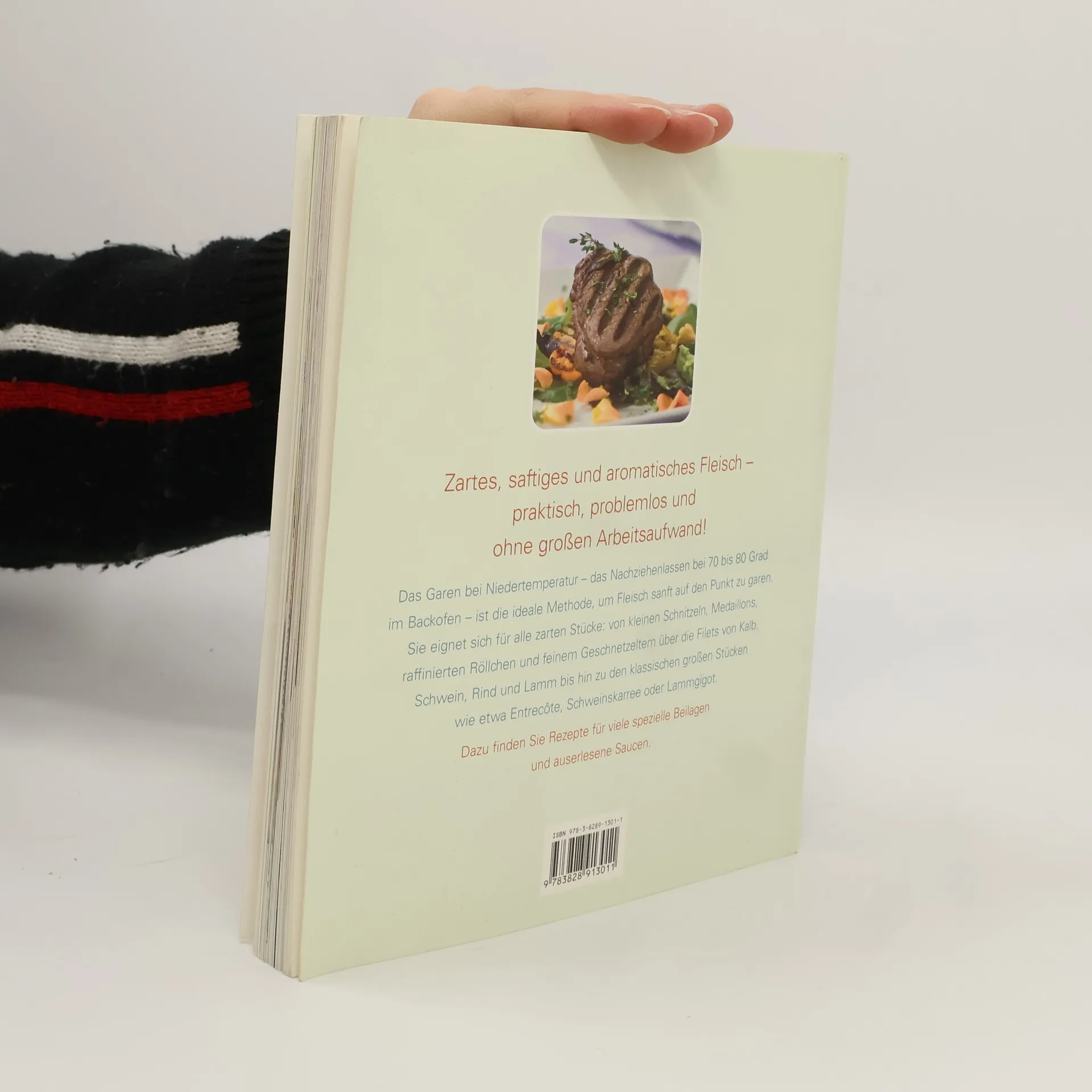 Zartes, saftiges und aromatisches Fleisch - praktisch, problemlos und ohne grossen Arbeitsaufwand! Das Garen bei Niedertemperatur - das Nachziehenlassen bei 70 bis 80 Grad im Backofen - ist die ideale Methode, um Fleisch sanft auf den Punkt zu garen. Sie eignet sich für alle zarten Stücke: von kleinen Schnitzeln, Medaillons, raffinierten Röllchen und feinem Geschnetzeltem über die Filets vom Kalb, Schwein, Rind und Lamm bis hin zu den klassischen grossen Stücken wie etwa Entrecôte, Schweinskarree oder Lammgigot. Dazu finden Sie Rezepte für viele spezielle Beilagen und auserlesene Saucen.