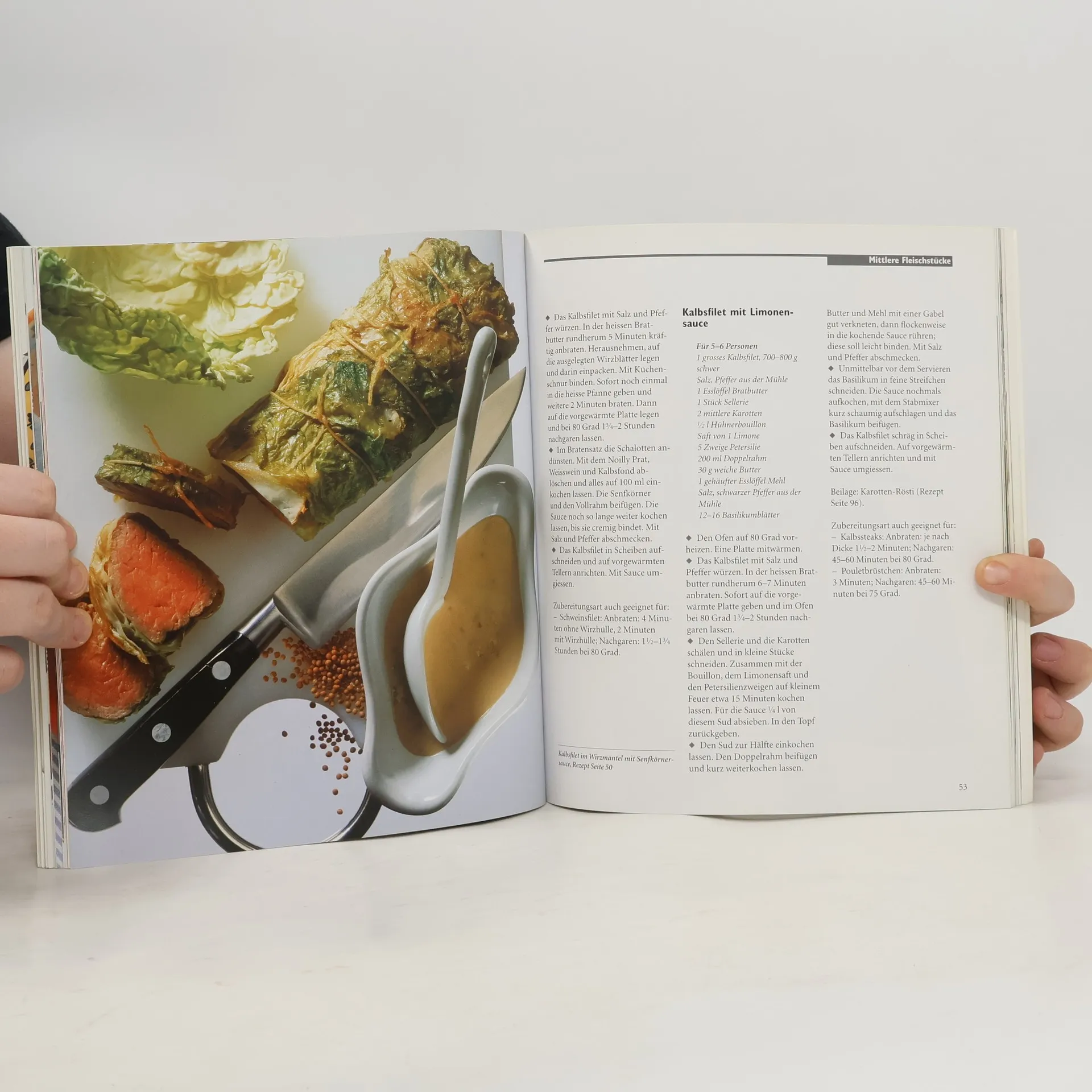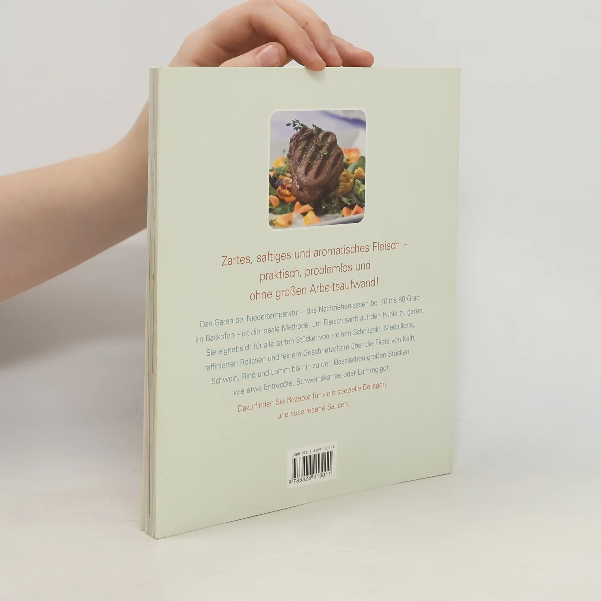 Zartes, saftiges und aromatisches Fleisch - praktisch, problemlos und ohne grossen Arbeitsaufwand! Das Garen bei Niedertemperatur - das Nachziehenlassen bei 70 bis 80 Grad im Backofen - ist die ideale Methode, um Fleisch sanft auf den Punkt zu garen. Sie eignet sich für alle zarten Stücke: von kleinen Schnitzeln, Medaillons, raffinierten Röllchen und feinem Geschnetzeltem über die Filets vom Kalb, Schwein, Rind und Lamm bis hin zu den klassischen grossen Stücken wie etwa Entrecôte, Schweinskarree oder Lammgigot. Dazu finden Sie Rezepte für viele spezielle Beilagen und auserlesene Saucen.