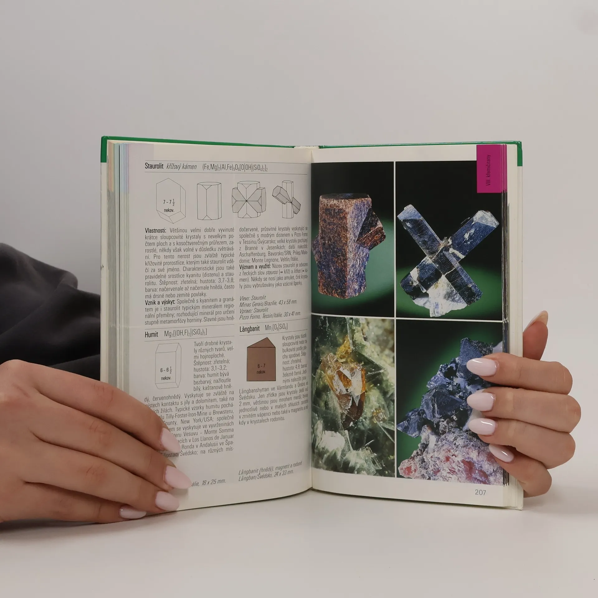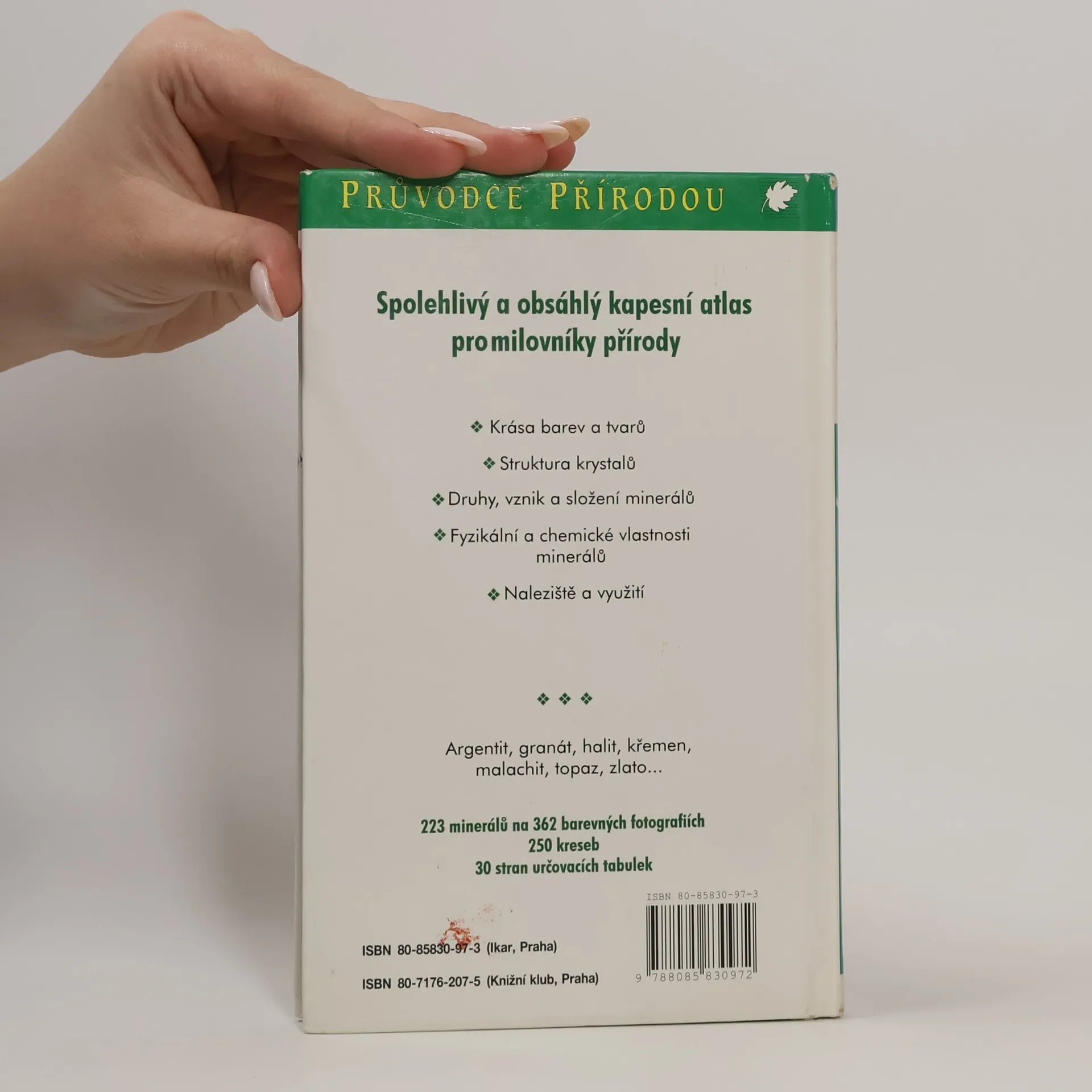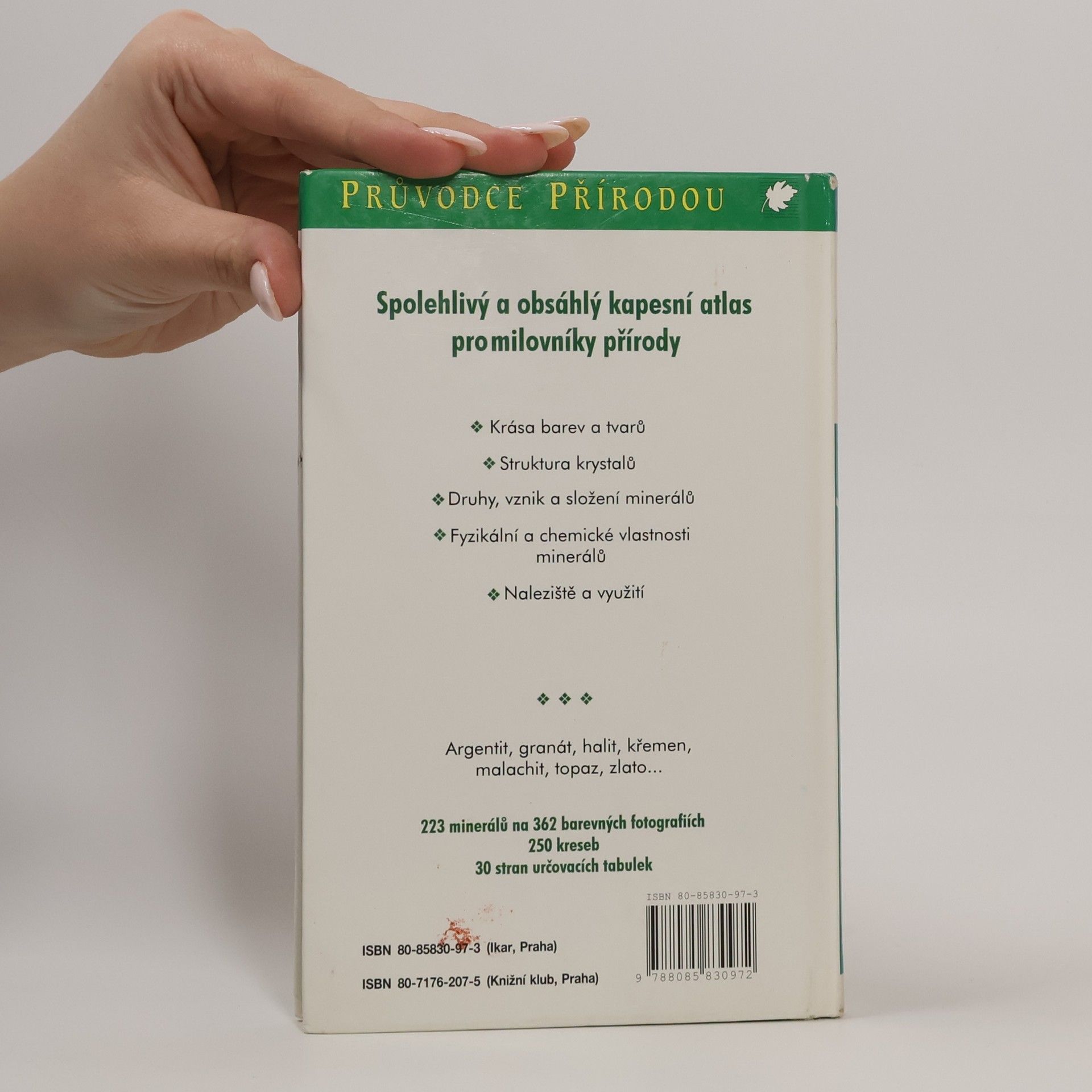 Tento průvodce přiblíží čtenářům krásu barev a tvarů krystalů a minerálů, seznámí se strukturou krystalů, informuje o druzích, vzniku a složení minerálů. Popisy 223 druhů minerálů obsahují údaje o fyzikálních a chemických vlastnostech, o vzniku a nalezištích, významu a použití. Kniha je doplněná přehlednými určovacími tabulkami.