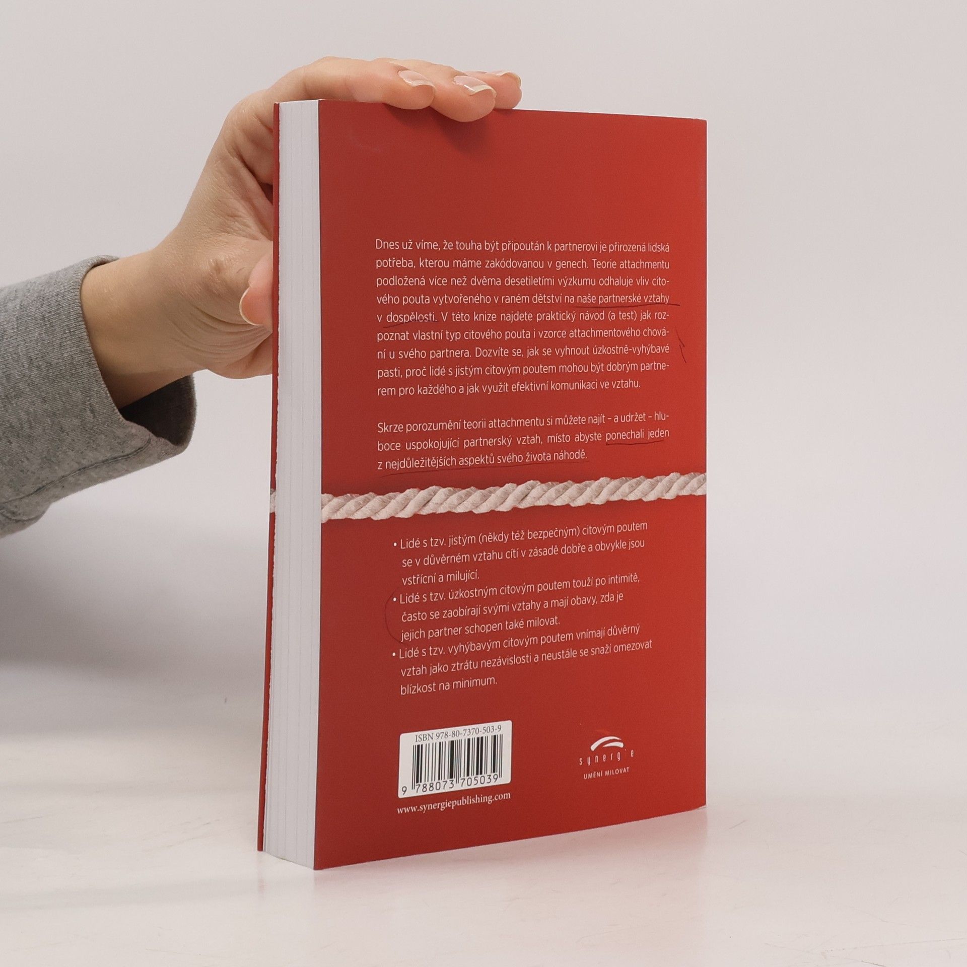 Poznejte svůj typ citového pouta a najděte trvalou lásku Dnes už víme, že touha být připoután k partnerovi je přirozená lidská potřeba, kterou máme zakódovanou v genech. Teorie attachmentu podložená více než dvěma desetiletími výzkumu odhaluje vliv citového pouta vytvořeného v raném dětství na naše partnerské vztahy v dospělosti. V této knize najdete praktický návod (a test) jak rozpoznat vlastní typ citového pouta i vzorce attachmentového chování u svého partnera. Dozvíte se, jak se vyhnout úzkostně‑vyhýbavé pasti, proč lidé s jistým citovým poutem mohou být dobrým partnerem pro každého a jak využít efektivní komunikaci ve vztahu. Skrze porozumění teorii attachmentu si můžete najít – a udržet – hluboce uspokojující partnerský vztah, místo abyste ponechali jeden z nejdůležitějších aspektů svého života náhodě.