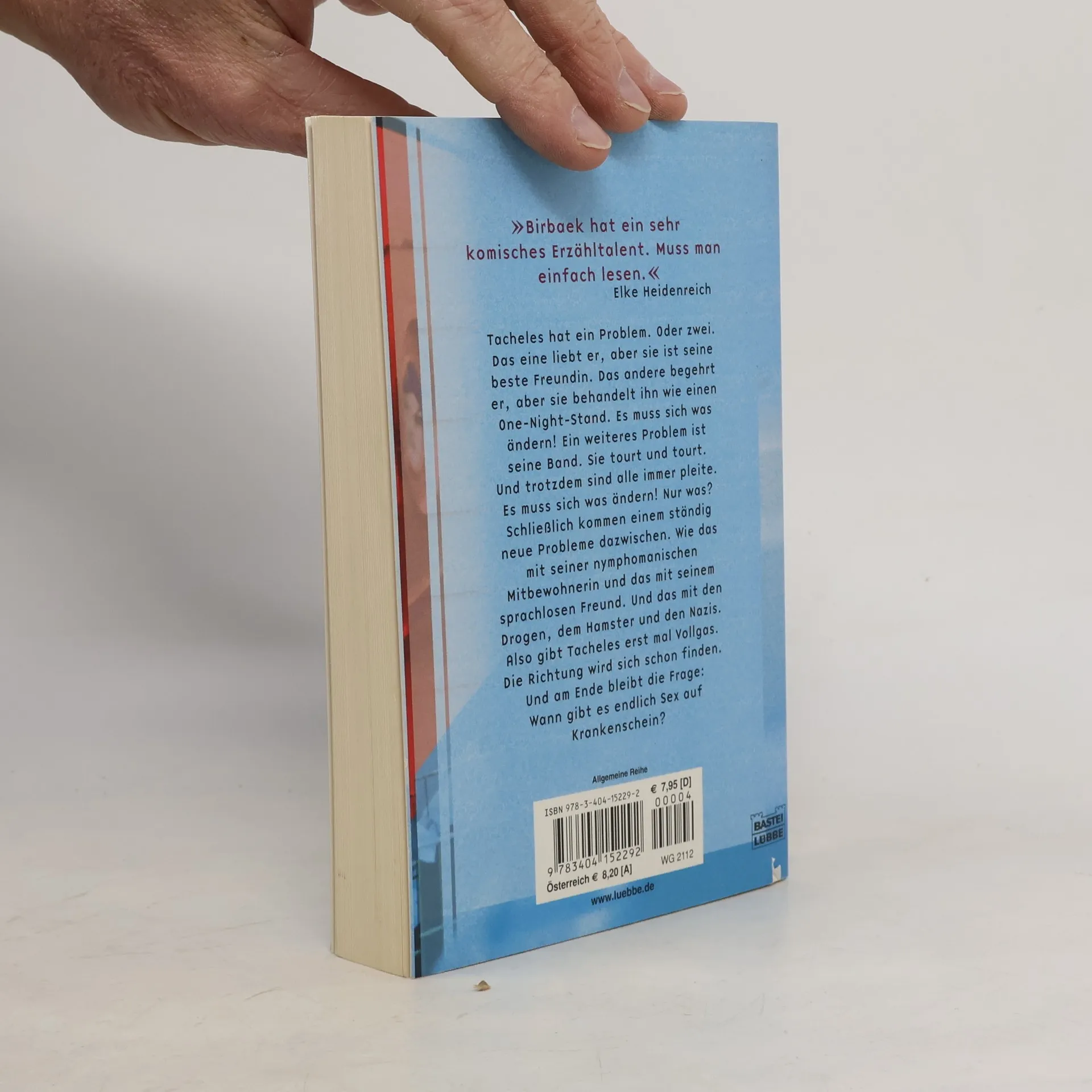 Tacheles hat ein Problem. Oder zwei. Das eine liebt er, aber sie ist seine beste Freundin. Das andere begehrt er, aber sie behandelt ihn wie einen One-Night-Stand. Es muss sich was ändern! Ein weiteres Problem ist seine Band. Sie tourt und tourt und trotzdem sind alle immer pleite. Es muss sich was ändern! Nur was? Schließlich kommen einem ständig neue Probleme dazwischen. Wie das mit seiner nymphomanischen Mitbewohnerin, einem sprachloser Freund. Und das mit den Drogen, dem Hamster und den Nazis. Also gibt Tacheles erst mal Vollgas. Die Richtung wird sich schon finden. Und am bleibt die Frage: Wann gibt es endlich Sex auf Krankenschein?