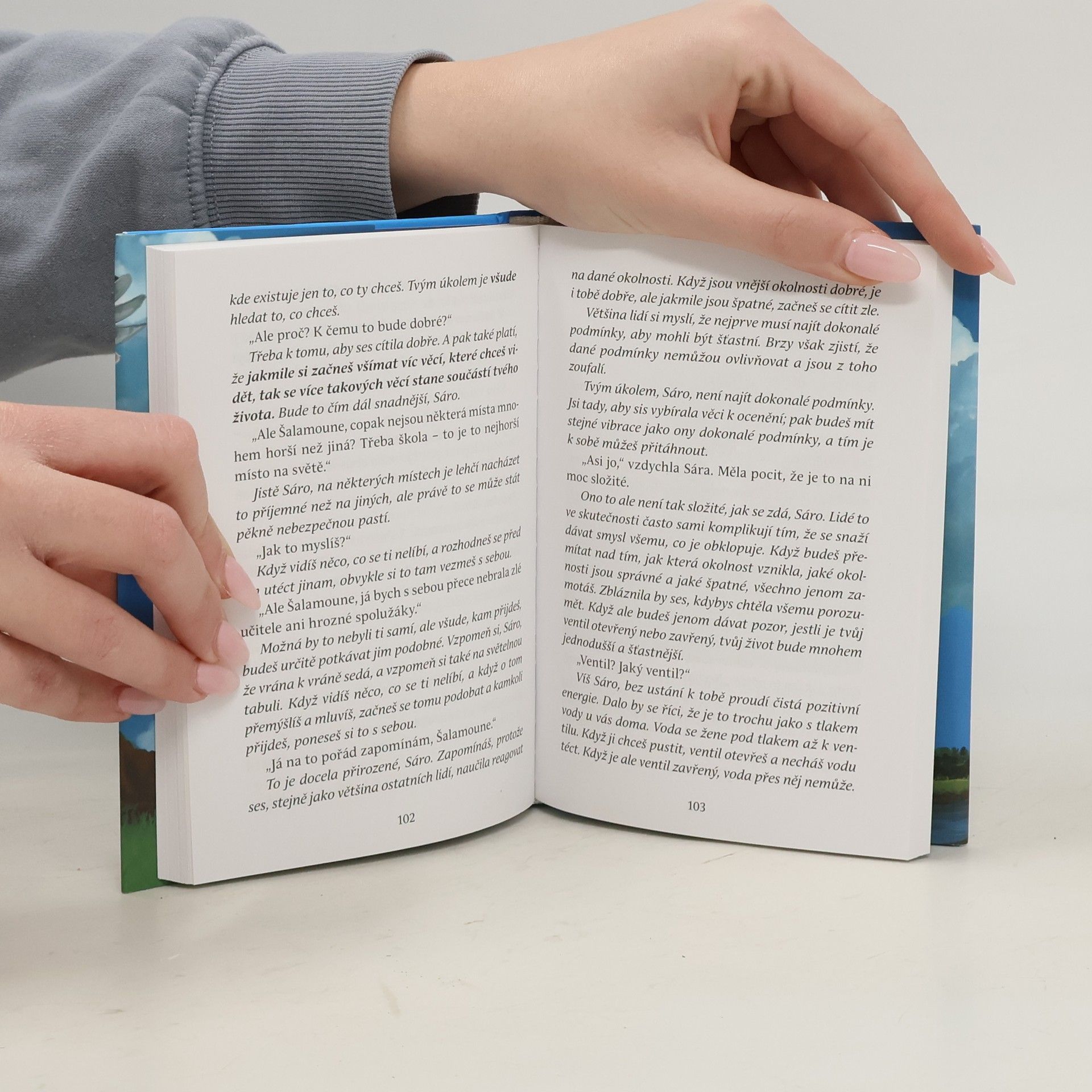 O věčném přátelství dvou blízkých duší. Sára je plachá, uzavřená desetiletá dívka, která není příliš šťastná. Má zlomyslného bratra, který ji neustále provokuje, kruté a bezcitné spolužáky, a ve škole ji to moc nebaví. Je zkrátka jako mnoho jiných dnešních dětí. To všechno se změní, když potká Šalamouna, moudrou nadpozemskou sovu, která jí ukáže, jak se na svět dívat jinak, očima bezvýhradné lásky. Naučí Sáru, jak přijímat čistou, pozitivní energii. Sára poprvé vidí, kým skutečně je a jak neomezené možnosti má. Jako čtenáři si uvědomíte, že je to mnohem víc než dětská knížka. Je to návod, jak získat radost a štěstí, které jsou naším vrozeným právem. Budete se Sárou sdílet její vzlety i propady na cestě k většímu naplnění a uvědomíte si, že takové dítě je v každém z nás.