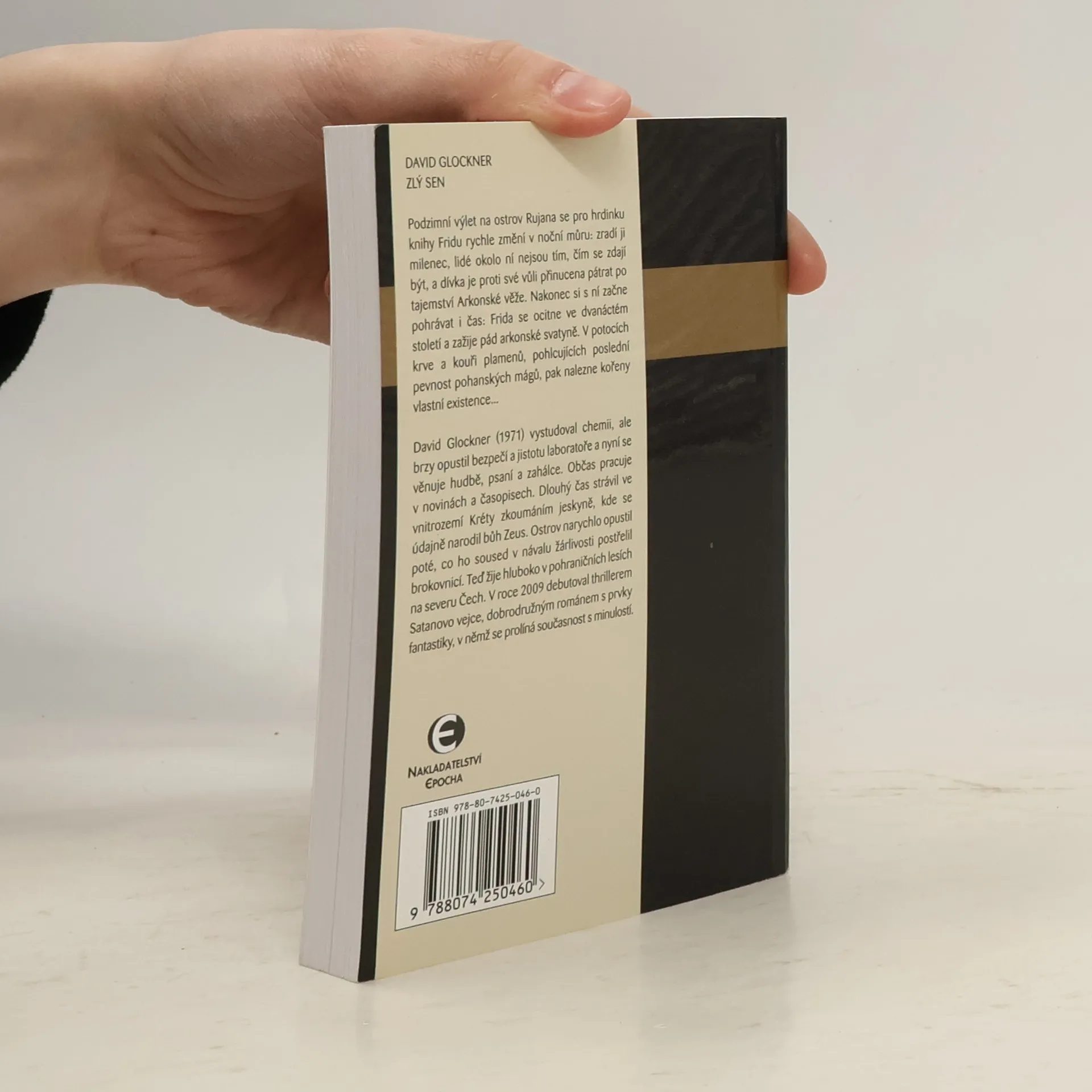 Podzimní výlet na ostrov Rujana se pro hrdinku knihy Fridu rychle změní v noční můru: zradí ji milenec, lidé okolo ní nejsou tím, čím se zdají být, a dívka je proti své vůli přinucena pátrat po tajemství Arkonské věže. Nakonec si s ní začne pohrávat i čas: Frida se ocitne ve dvanáctém století a zažije pád arkonské svatyně. V potocích krve a kouři plamenů, pohlcujících poslední pevnost pohanských mágů, pak nalezne kořeny vlastní existence... David Glockner (1971) vystudoval chemii, ale brzy opustil bezpečí a jistotu laboratoře a nyní se věnuje hudbě, psaní a zahálce. Občas pracuje v novinách a časopisech. Dlouhý čas strávil ve vnitrozemí Kréty zkoumáním jeskyně, kde se údajně narodil bůh Zeus. Ostrov narychlo opustil poté, co ho soused v návalu žárlivosti postřelil brokovnicí. Teď žije hluboko v pohraničních lesích na severu Čech. V roce 2009 debutoval thrillerem Satanovo vejce, dobrodružným románem s prvky fantastiky, v němž se prolíná současnost s minulostí.