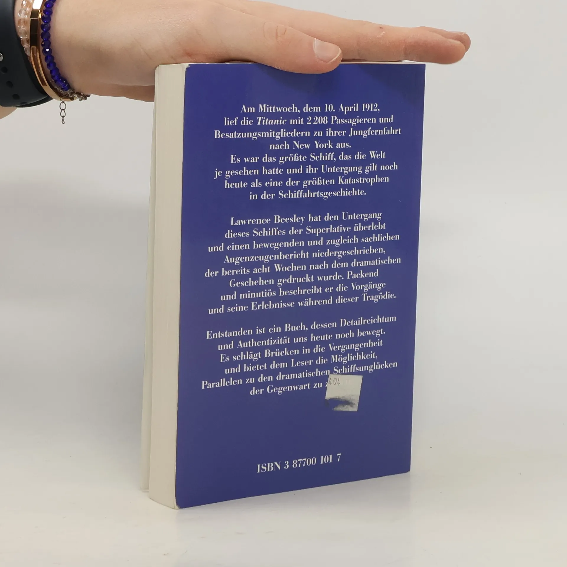 10. April 1912. Die Titanic läuft mit 2208 Passagieren und Besatzungsmitgliedern zu ihrer Jungfernfahrt nach New York aus. Ein Schiff der Superlative auf der Fahrt in die größte Katastrophe der Seefahrtsgeschichte. Lawrence Beesley, Passagier der zweiten Klasse, hat den Untergang der Titanic überlebt. In seinem Augenzeugenbericht, der bereits acht Wochen nach dem Unglück gedruckt wurde, beschreibt Beesley packend und minutiös die Vorgänge während und nach der Tragödie. Voller Authentizität und Detailreichtumg - ein bewegendes Dokument, das Brücken in die Vergangenheit schlägt und erlaubt, Parallelen zu den Schiffsunglücken der Gegenwart zu ziehen.