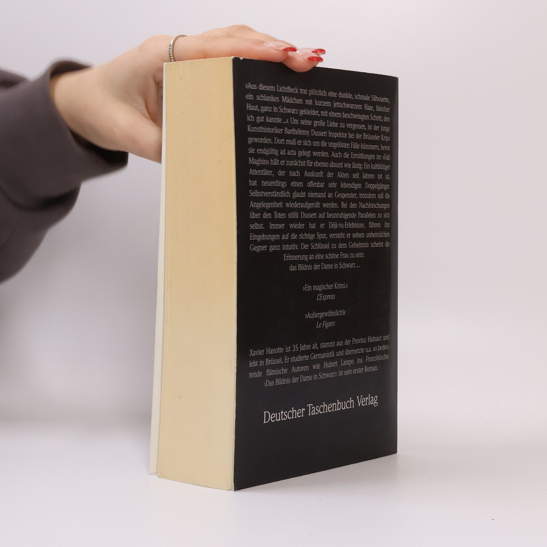 Der junge Kunsthistoriker Barthélemy Dussert ist Inspektor bei der Brüsseler Kripo geworden, um seine große Liebe zu vergessen. Dort muß er sich um die ungelösten Fälle kümmern, bevor sie endgültig ad acta gelegt werden. Die Ermittlungen im Fall Maghin hält er für absurd: Ein kaltblütiger Attentäter, der nach Auskunft der Akten seit Jahren tot ist, hat neuerdings einen offenbar sehr lebendigen Doppelgänger. Bei den Nachforschungen über den Toten stößt Dussert auf beunruhigende Parallelen zu sich selbst. Der Schlüssel zu dem Geheimnis scheint die Erinnerung an eine schöne Frau zu sein: das Bildnis der Dame in Schwarz.