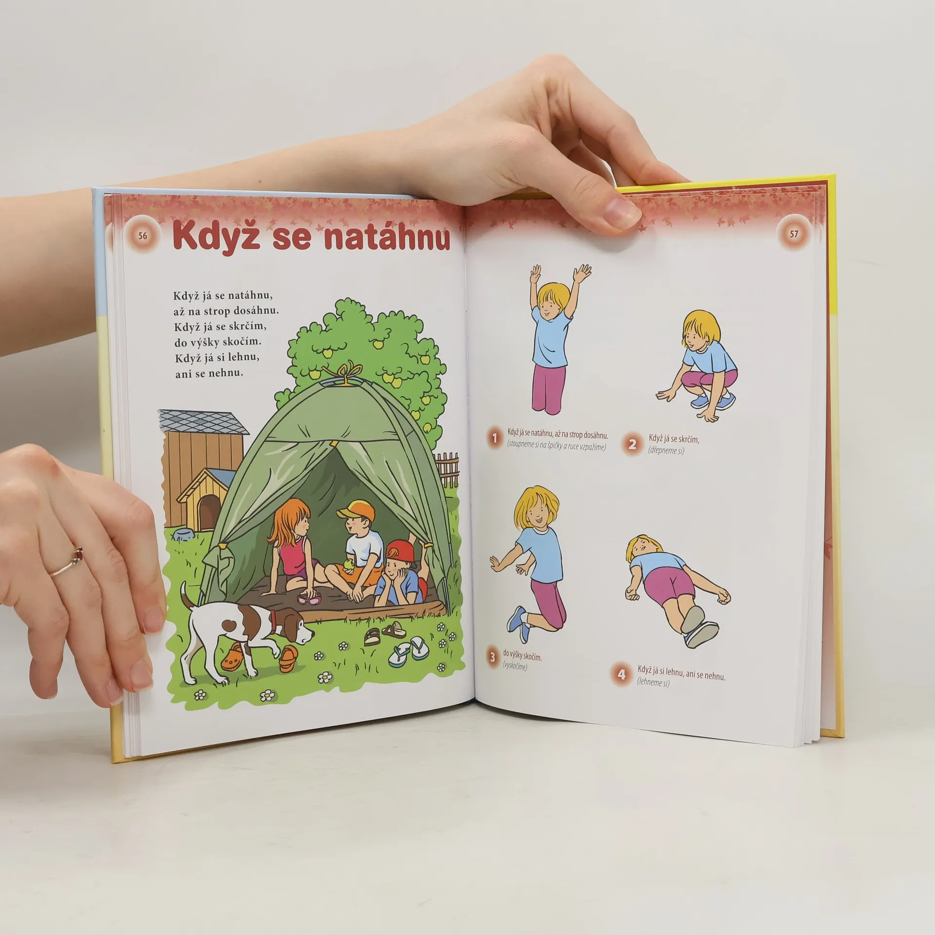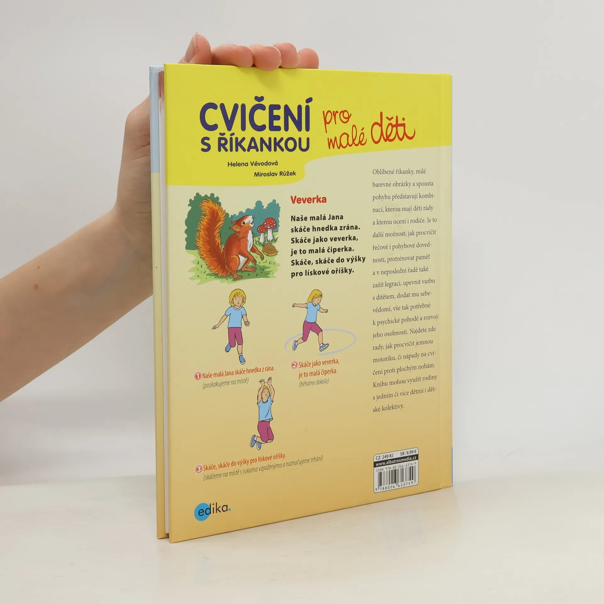 Oblíbené říkanky, milé barevné obrázky a spouta pohybu představuje kombinaci, kterou mají děti rády a přitom ji ocení i jejich rodiče. Je to další možnost jak procvičit řečové i pohybové dovednosti, protrénovat paměť, upevnit vazbu s dítětem, dodat mu sebevědomí, tolik potřebné k psychické pohodě a rozvoji jeho osobnosti. A to vše zábavnou formou. V knížce také najdete mimo jiné i tipy na procvičení jemné motoriky či cvičení proti plochým nohám. Nápady jsou využitelné i pro dětské kolektivy.