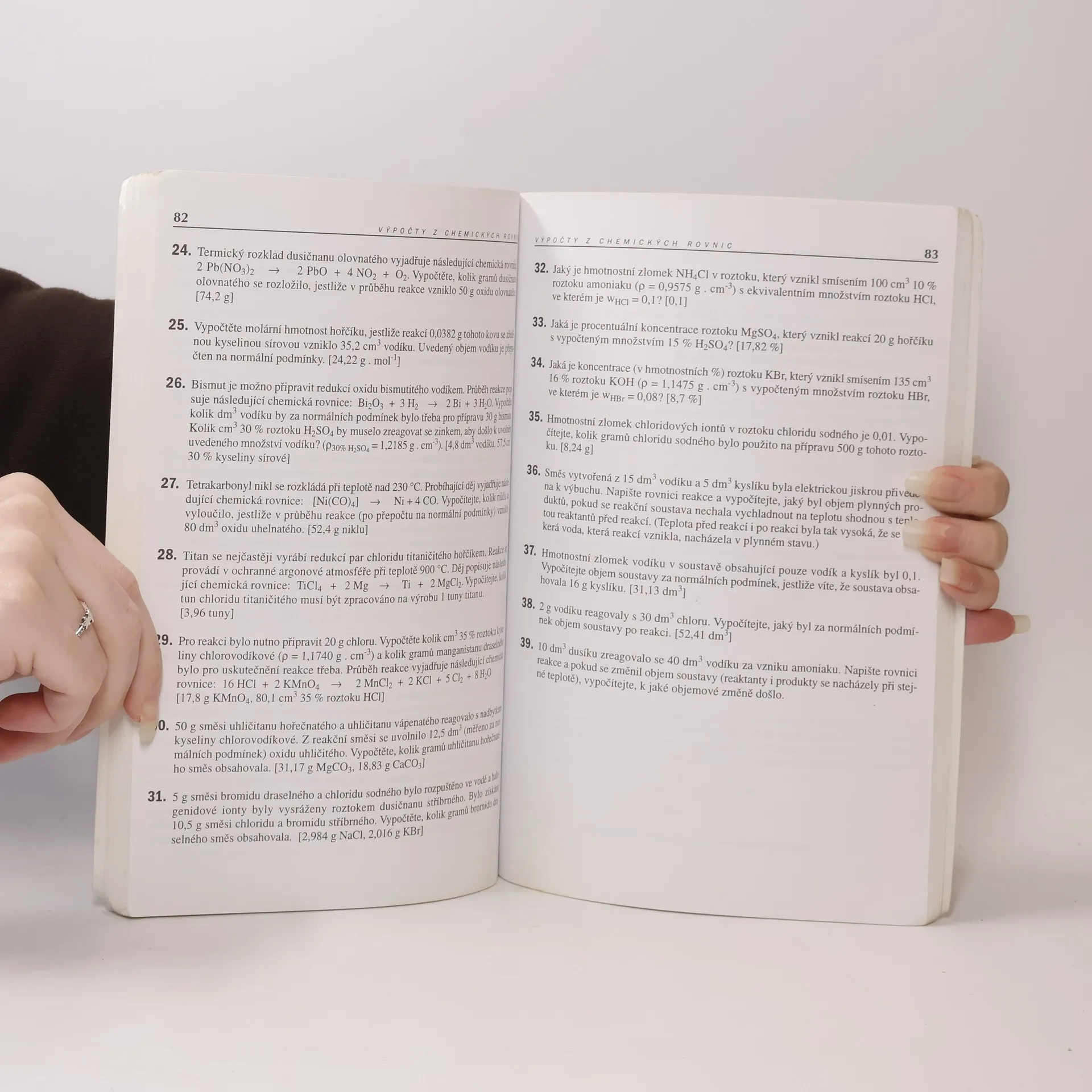 Sbírka řešených a neřešených příkladů z chemie - sbírku tvoří 17 kapitol nazvaných stavba atomu, chemická vazba, úpravy chemických rovnic, hmotnostní zlomek, objemové procento, látkové množství, molární koncentrace, výpočty z chemického vzorce, ředění roztoků, výpočty z chemických rovnic, výpočty pH, součin rozpustnosti, termochemie, elektrochemie…