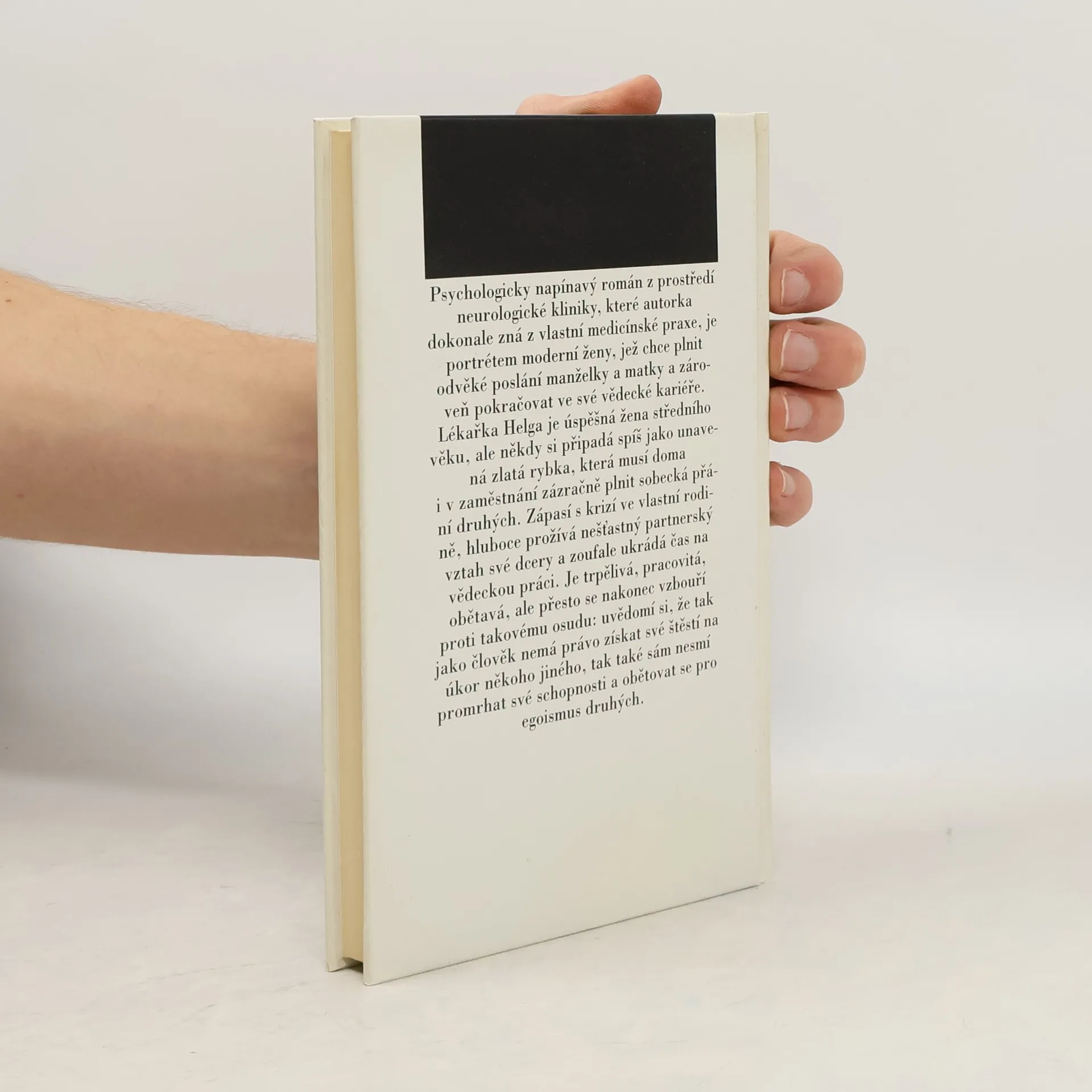 Život současné ženy, pracující na exponovaném místě přednostky kliniky, je námětem románu oblíbené spisovatelky. Autorka podává obraz prostředí, které z praxe dokonale zná. Hrdinka si ve vnitřním monologu uvědomuje, že člověk sice nemá právo získat své štěstí na úkor druhých, ale zároveň je také nesmí obětovat pro egoismus svých blízkých.... celý text