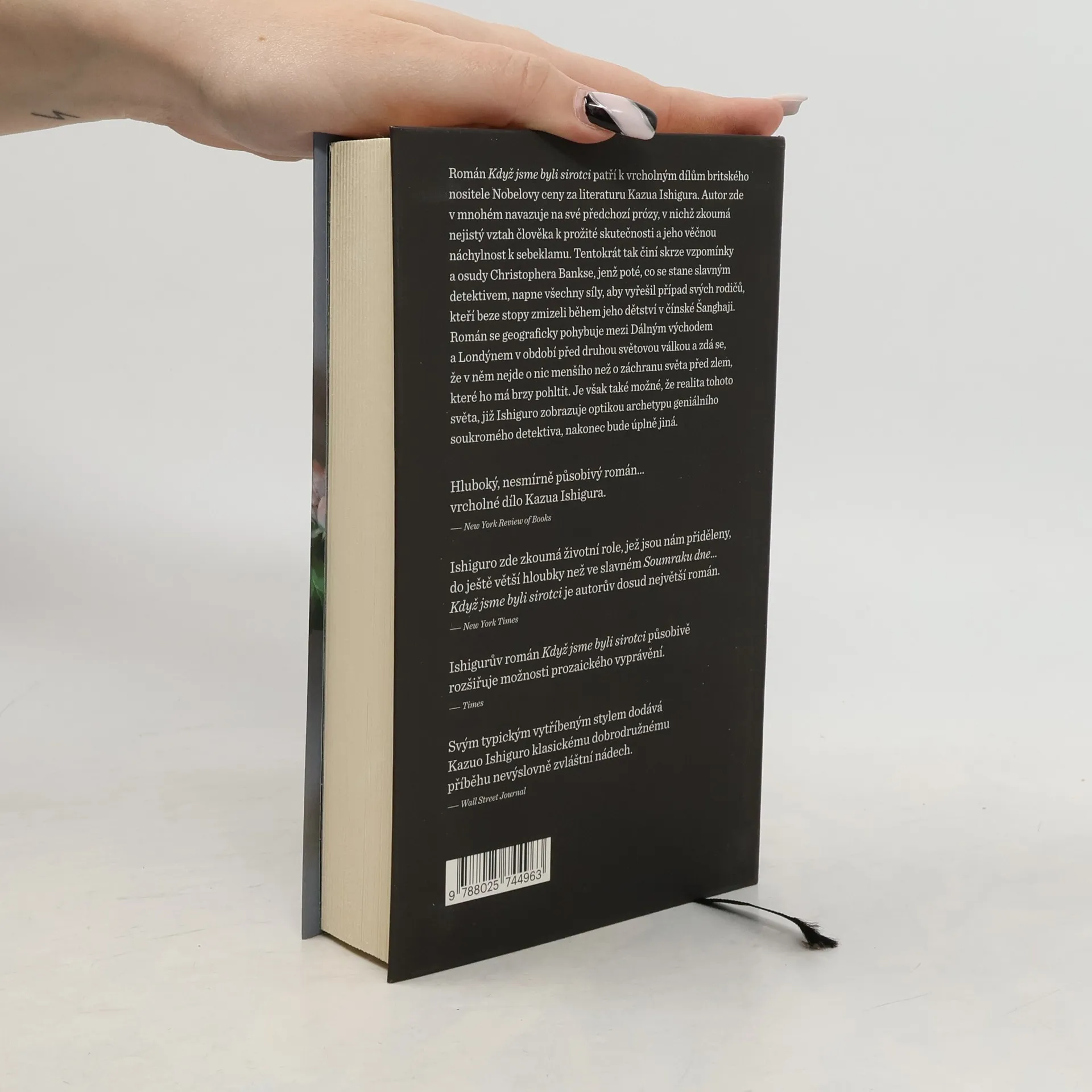 Příběh anglického detektiva, odhalujícího po téměř třiceti letech tajemství zmizení svých rodičů, žijících na počátku 20. století v Šanghaji. Román Když jsme byli sirotci patří k vrcholným dílům britského nositele Nobelovy ceny za literaturu Kazua Ishigura. Autor zde v mnohém navazuje na své předchozí čtyři prózy, v nichž zkoumá nejistý vztah člověka k prožité skutečnosti a jeho věčnou náchylnost k sebeklamu. Tentokrát tak činí skrze vzpomínky a osudy Christophera Bankse, jenž poté, co se stane slavným detektivem, napne všechny své síly, aby vyřešil případ svých rodičů, kteří beze stopy zmizeli v době jeho dětství prožitém v čínské Šanghaji. Román se geograficky pohybuje mezi Dálným východem a Londýnem v době před druhou světovou válkou a zdá se, že v něm nejde o nic menšího než o záchranu světa před zlem, které ho má brzy pohltit. Je však také možné, že realita tohoto světa, již Ishiguro zobrazuje optikou archetypu geniálního soukromého detektiva, nakonec bude úplně jiná. Nakladatelská anotace. Kráceno.