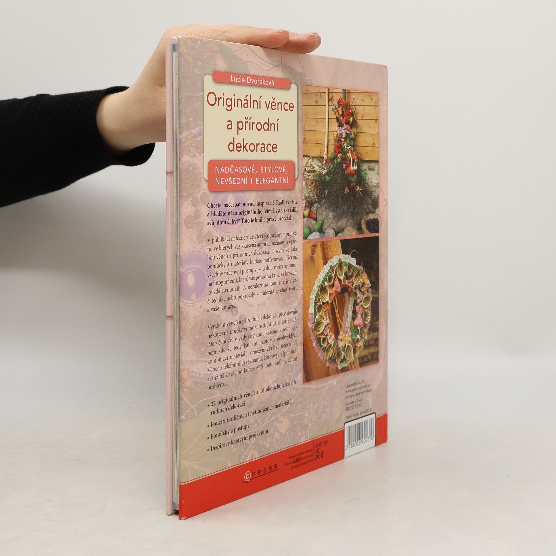 Chcete načerpat novou inspiraci? Rádi tvoříte a hledáte něco originálního, čím byste zkrášlili váš dům či byt? Objevte svět přírodních materiálů!V této knize naleznete 40 projektů, ve kterých vás zkušená autorka seznámí s výrobou věnců a přírodních dekorací. Dozvíte se, jaké pomůcky a materiály budete potřebovat, přičemž všechny pracovní postupy jsou doprovázeny mnoha fotografiemi, které vás povedou krok za krokem ke zdárnému cíli.