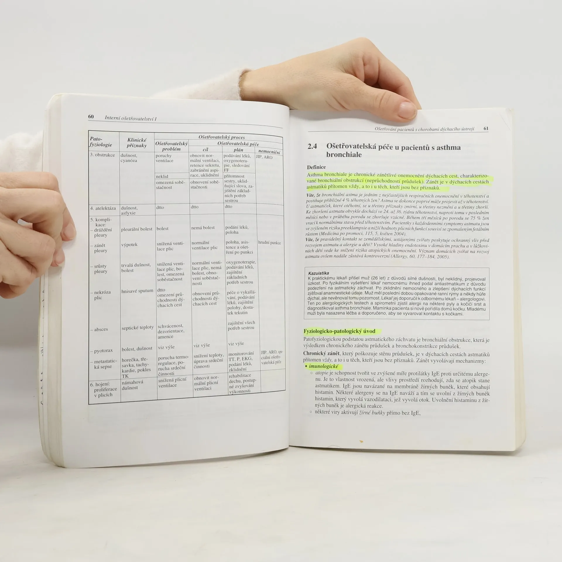 První díl základní učebnice k předmětu interní ošetřovatelství na vyšších odborných a vysokých školách, která je v tomto rozsahu a stylu provedení v současné době ojedinělá. Autoři vycházejí z potřeb studentů i učitelů zabývat se nejen lékařským pojetím onemocnění vnitřního ústrojí, ale především problematikou ošetřovatelské péče o tyto pacienty. Vedle teoretického úvodu ke každé skupině chorob je důraz kladen především na zhodnocení potřeb pacientů, stanovení ošetřovatelských diagnóz a plánování a realizaci ošetřovatelské péče. Studenti i sestry po jejím prostudování budou znát etiologii, diagnostiku a způsob léčby jednotlivých onemocnění, budou umět rozpoznat problémy pacienta, asistovat lékaři při diagnostických a léčebných postupech a plánovat, realizovat a hodnotit ošetřovatelskou péči. Kniha je určena nejen studentům a jejich pedagogům, ale také všem sestrám, kterým poskytne nejnovější ucelené poznatky z oboru a pomůže zkvalitnit péči o pacienty. Obsahuje tyto kapitoly: ošetřování pacientů na interním oddělení, ošetřování pacientů s chorobami dýchacího, oběhového a trávicího ústrojí.