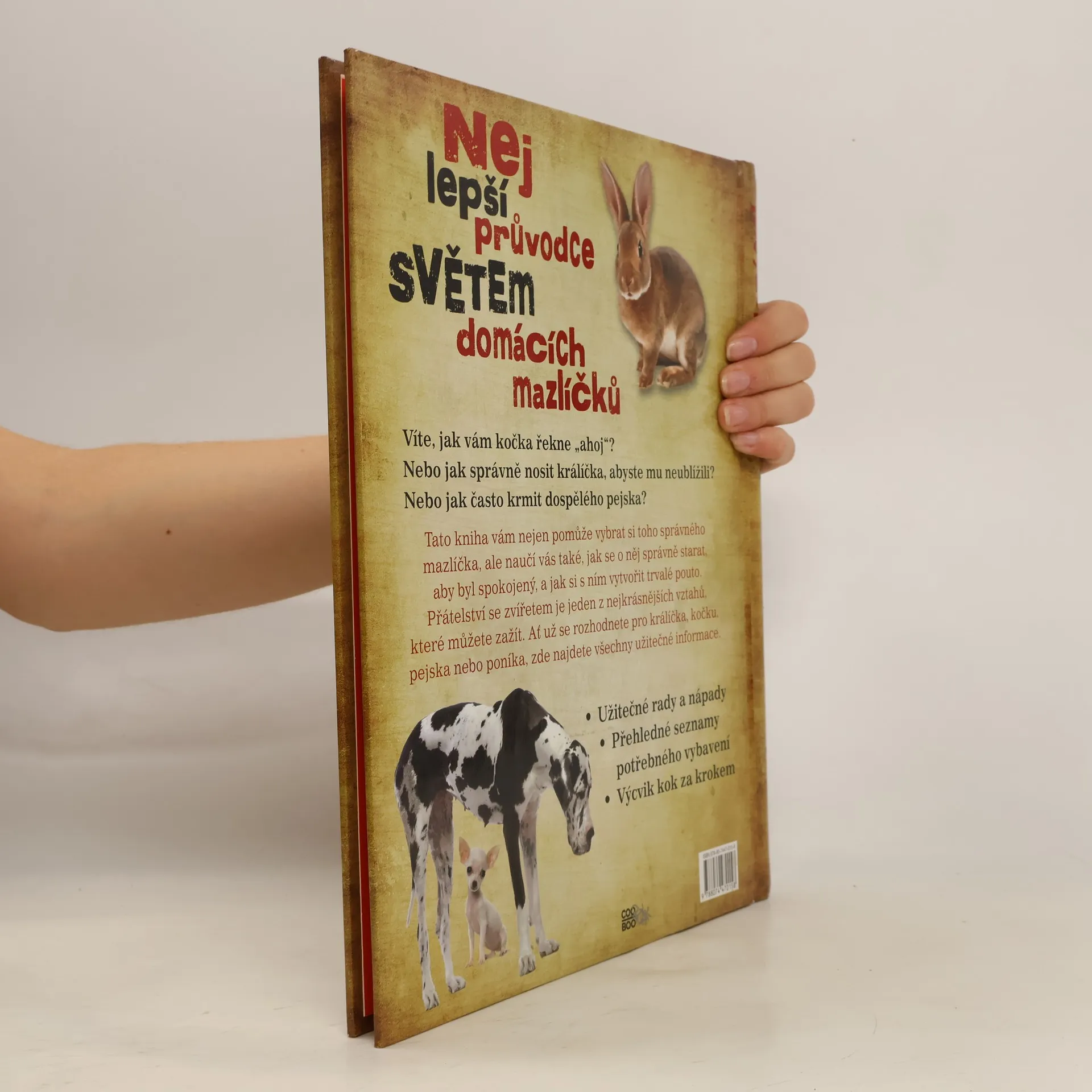 Víte, jak vám kočka řekne „ahoj“? Nebo jak správně nosit králíčka, abyste mu neublížili? Nebo jak často krmit dospělého pejska? Tato kniha vám nejen pomůže vybrat si toho správného mazlíčka, ale naučí vás také, jak se o něj správně starat, aby byl spokojený, a jak si s ním vytvořit trvalé pouto. Přátelství se zvířetem je jeden z nejkrásnějších vztahů, které můžete zažít. Ať už se rozhodnete pro králíčka, kočku, pejska nebo poníka, zde najdete všechny užitečné informace.