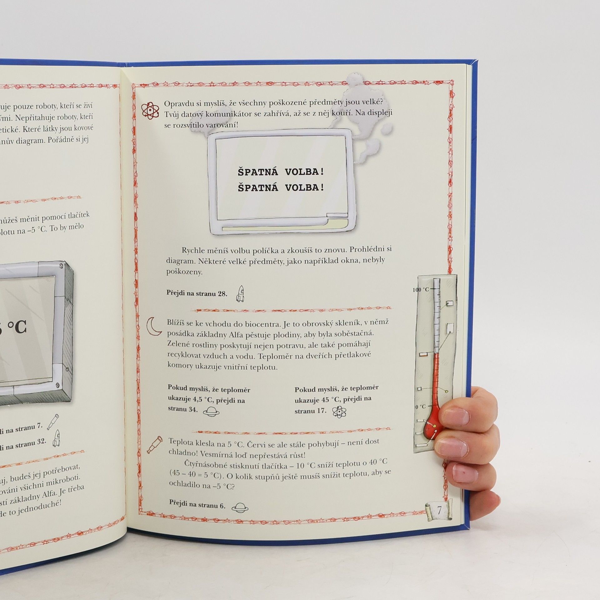 Tato knížka přenese malého čtenáře na Planetu hádanek. Čeká ho nelehký úkol - záchrana vesmírné základny Alfa před nepřátelskými roboty. Podaří se mu pomocí matematických znalostí a bystré mysli nad roboty zvítězit? Jestli někdy zaváhá, nevadí, je tu ještě robotek Alfík, která mu rád přispěchá na pomoc. Knížky z edice Dobrodružná matematika jsou specifické svou formou - nečtou se chronologicky po stránkách za sebou, ale čtenář listuje a posupuje podle toho, jak řeší jednotlivé úkoly. Se správnou odpovědí se posune dál v ději příběhu, vinou špatné odpovědi zabloudí, ale je nasměrován k opětovnému řešení úlohy.
