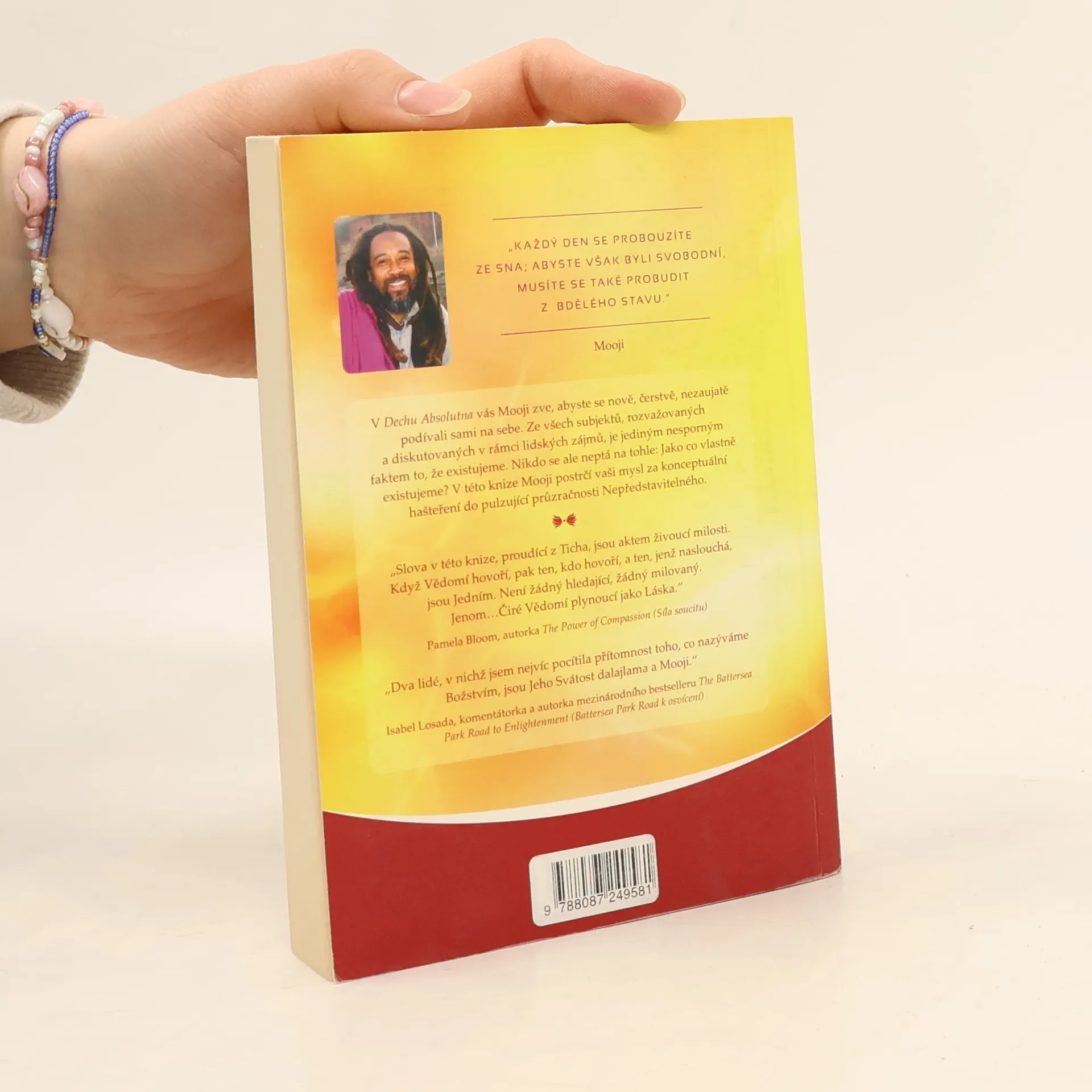 Dech Absolutna je souborem rozhovorů mezi Moojim a upřímnými hledajícími Pravdy, které se odehrály v průběhu uplynulých několika zim u Arunáčaly, posvátné hory nedaleko jihoindického města Tiruvannamalai. Tématem všech Moojiho proslovů, a tato kniha tudíž není výjimkou, je naše vlastní Já. Jako přívětivý, milující rodič používá slova jako kostku mýdla k setření falešných přesvědčení a předpokladů, jež nás udržují uvězněné ve světě, který si sami vytváříme. Předtím, než začneme brát Moojiho za slovo a zkoumat, o čem jsme přesvědčení, že to víme, si ani nemusíme uvědomovat, že tvůrci vlastního utrpení jsme my sami. Neznamená to, že hledání Pravdy má jakýkoli jiný cíl než její vlastní pochopení. Mooji zdůrazňuje následující: Existujeme; úplně každý z nás už tohle ví jako fakt. Nové a svěží je však jeho výzva, abychom se začali zabývat touto pronikavou otázkou: Jako co existujeme?