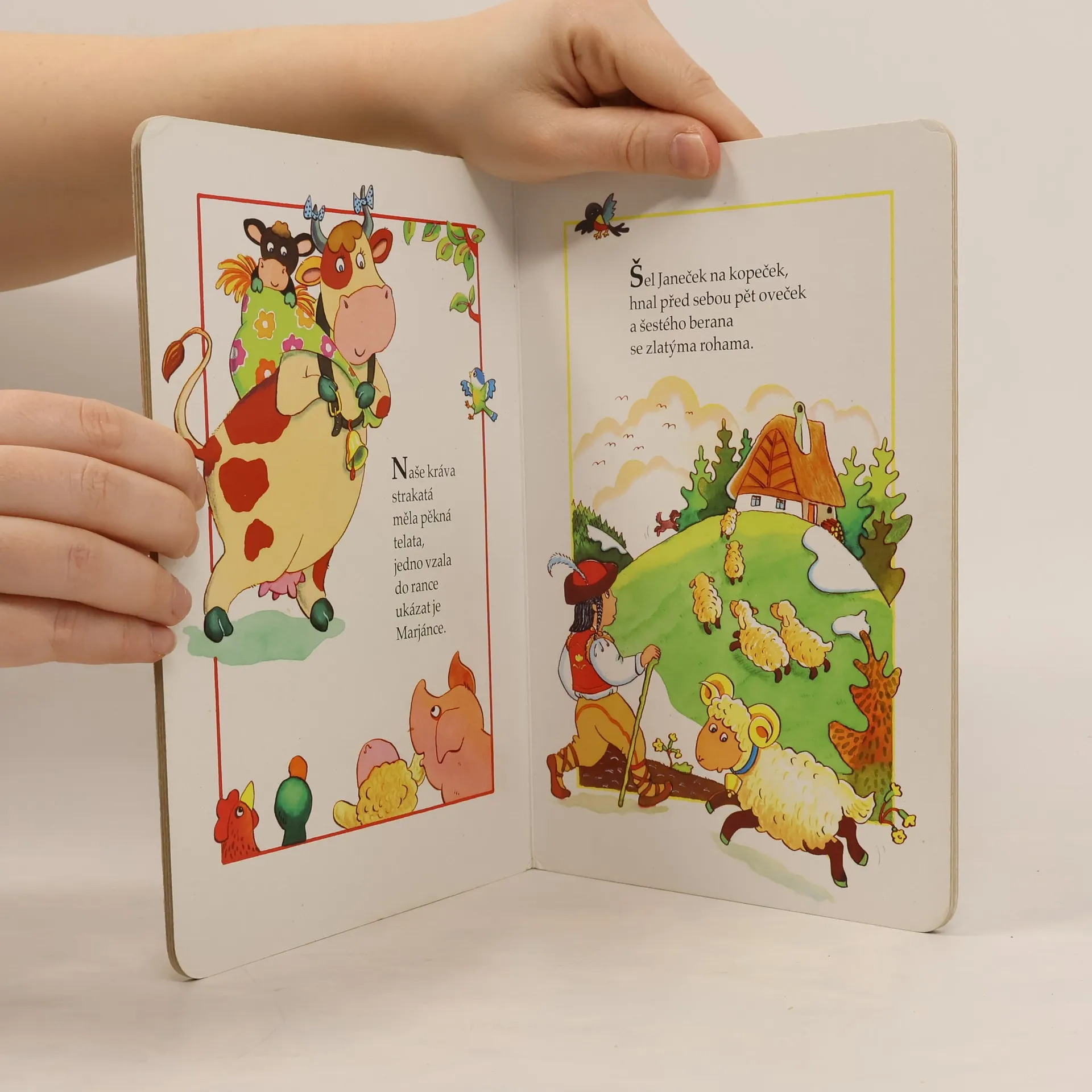 Leporelo nejznámějších říkadel pro malé děti s oblíbenými ilustracemi Adolfa Dudka.