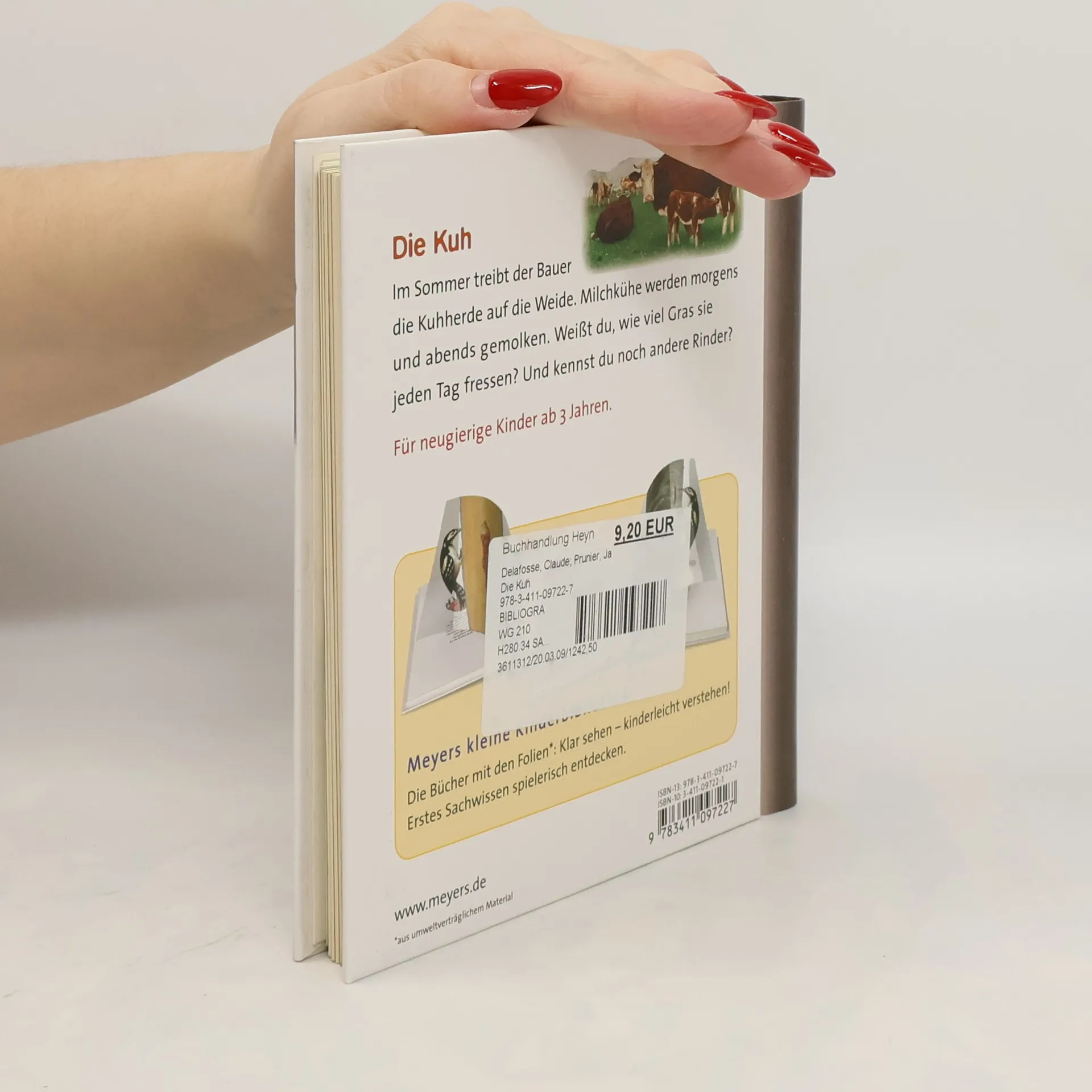 Durch spannende Effekte vermittelt die Bilderbuchreihe „Meyers kleine Kinderbibliothek“ erstes Sachwissen für Kinder ab 3 Jahren. Transparente Folien zeigen beim Umblättern das Innenleben von Dingen, machen Verdecktes sichtbar oder veranschaulichen Veränderungen. In diesem Band erfahren neugierige Kinder vieles über das Leben von Kühen: in welchen Ländern sie leben, wie viel Gras sie jeden Tag fressen, warum sie Milch geben und welche Rinder ein geflecktes Fell haben.
