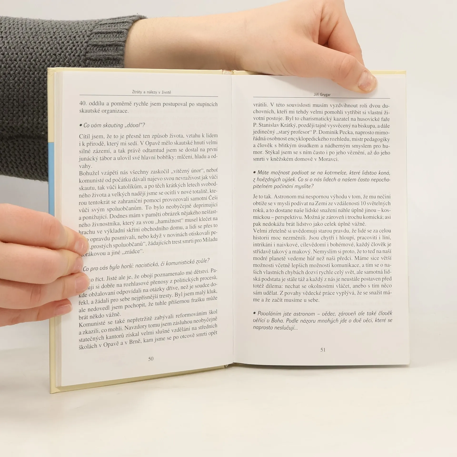„Obyčejné věci“ to je hlavní námět rozhovorů s patnácti osobnostmi, které se prezentují v této knize. Jsou ale rodina, přátelé, láska, víra, zaměstnání či rodná zem skutečně věci obyčejné? Možná ano, zvláště, když se nám jich dostává. Co když ale o jednu z nich přijdeme? To je pak jedno jestli jsme slavní nebo ne. V ten okamžik jsme zase „jenom“ lidmi. Každý z nás si ovšem z podobných zážitků, vědomě či nikoliv, odnáší něco svého, něco co lze číst hlavně mezi řádky a co nám dává poznat nejdůležitější věci v životě lidském. I proto jeden vědec, fyzioterapeut, fotbalista, humanitární pracovník, šansoniérka, fotograf, primáš, šlechtic, dvě zpěvačky, houslový virtuos, novinářka, dva herci a herečka, s větší či menší otevřeností, povídají o svých životních ztrátách a nálezech. To, jakým způsobem se s nimi poprali, kde našli sílu, proč se nevzdali, i to jak se radovali nám přiblíží tyto známé osobnosti dost často v zcela jiném, pro mnohé čtenáře možná i překvapivém, světle.