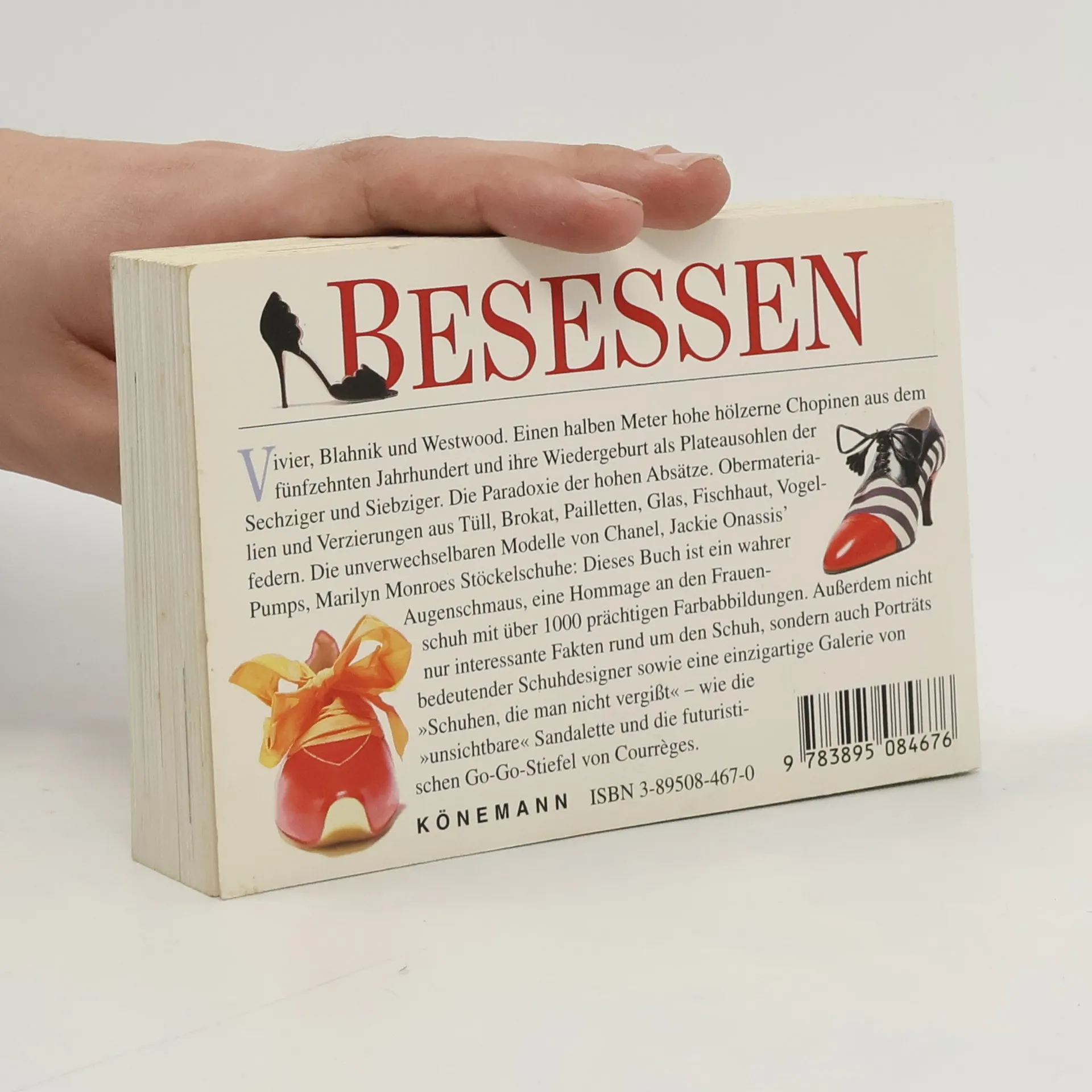 Besessen - Vivier, Blahnik und Westwood. Einen halben Meter hohe hölzerne Chopinen aus dem fünfzehnten Jahrhundert und ihre Wiedergeburt als Plateausohlen der Sechziger und Siebziger. Die Paradoxie der hohen Absätze. Obermaterialien und Verzierungen aus Tüll, Brokat, Pailletten, Glas, Fischhaut, Vogelfedern. Die unverwechselbaren Modelle von Chanel, Jackie Onassis' Pumps, Marilyn Monroes Stöckelschuhe: Dieses Buch ist ein wahrer Augenschmaus, eine Hommage an den Frauenschuh mit über 1000 prächtigen Farbabbildungen. Außerdem nicht nur interessante Fakten rund um den Schuh, sondern auch Porträts bedeutender Schuhdesigner sowie eine einzigartige Galerie von "Schuhen, die man nicht vergißt" - wie die "unsichtbare" Sandalette und die futuristischen Go-Go-Stiefel von Courrèges.