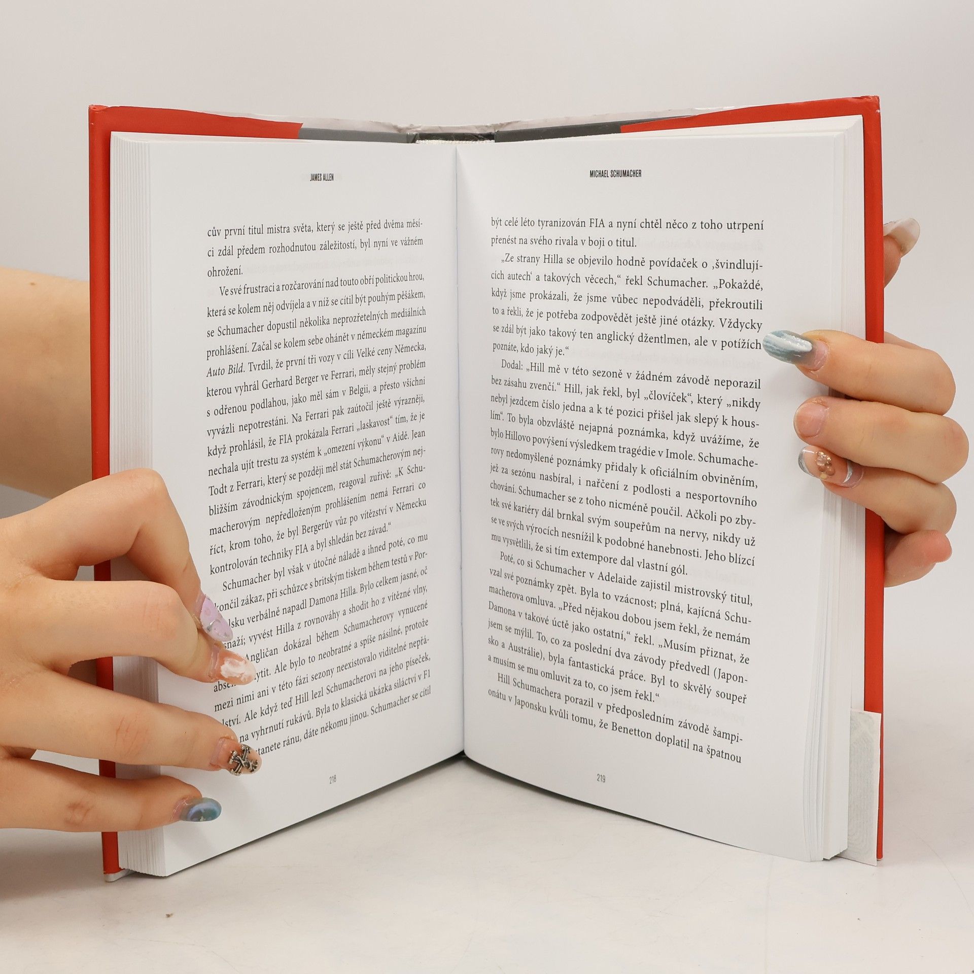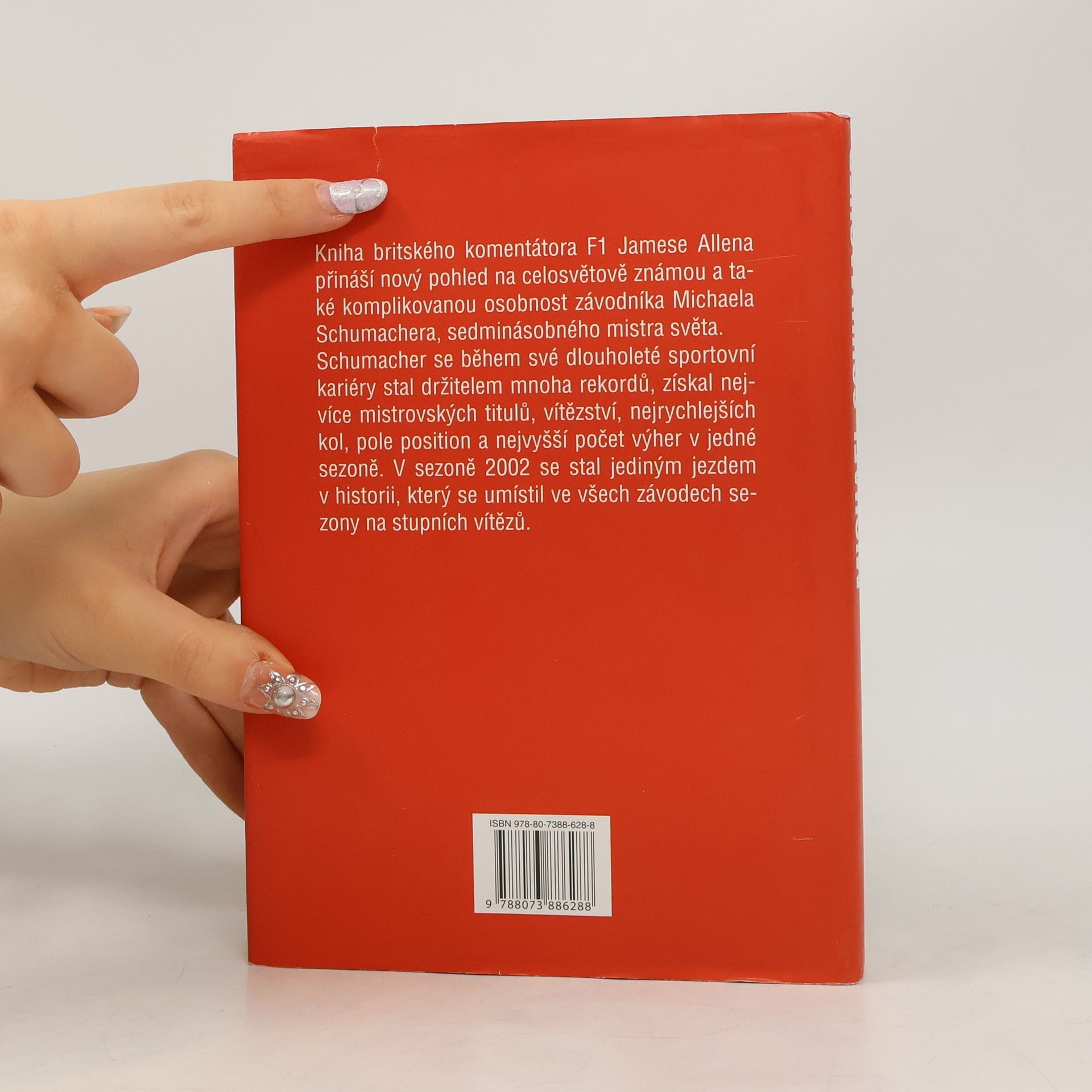 Kniha známého britského komentátora F1 Jamese Allena přináší pohled na celosvětově známou a také komplikovanou osobnost závodníka Michaela Schumachera, sedminásobného mistra světa. Schumacher se během své dlouholeté sportovní kariéry stal držitelem mnoha titulů, vítězství, nejrychlejších kol, pole position a nejvyšší počet výher v jedné sezoně. V sezoně 2002 se stal jediným jezdcem v historii, který se umístil na stupních vítězů.