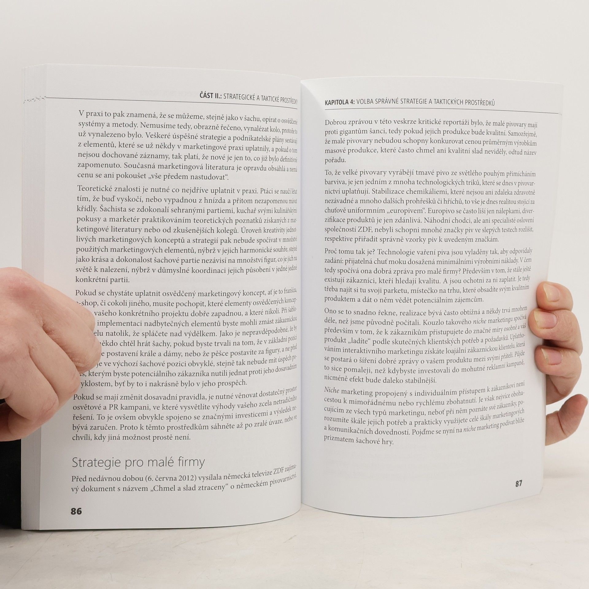 Na počátku jsou síly zcela vyrovnány. Výsledek hry záleží na umění obou soupeřů. Cílem je dát soupeři mat, zvítězit. Hráči se střídají v tazích, mění pozice a snaží se realizovat svoje plány. Využívají všech taktických možností. Potřeba dělat ve správný čas správné tahy platí jak pro šachy, tak i pro marketing. Kniha vás provede džunglí marketingových principů nenásilně a snadno, naznačí možná úskalí a navede vás na cestu k úspěchu a prosperitě. Připravte se na řadu překvapení!