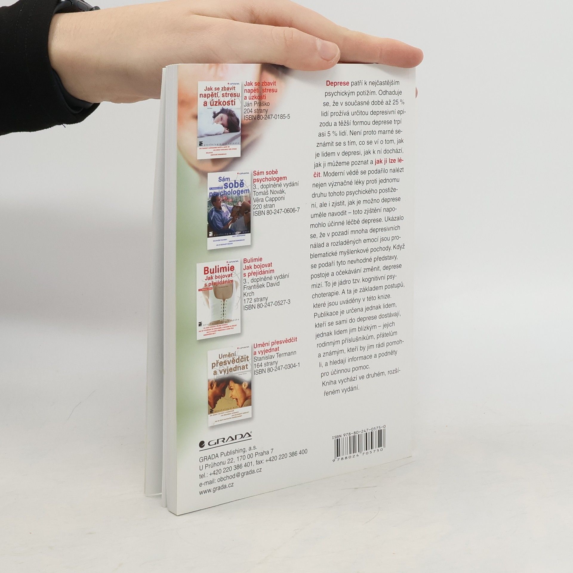 Cílem publikace je dát lidem postiženým depresí a lidem okolo nich nejzákladnější informace o tom, co deprese je, co by se při ní dělat nemělo a naopak, co se dělat může a má, aby se duševní stav ... 2., rozšířené vydání, dotisk r. 2007