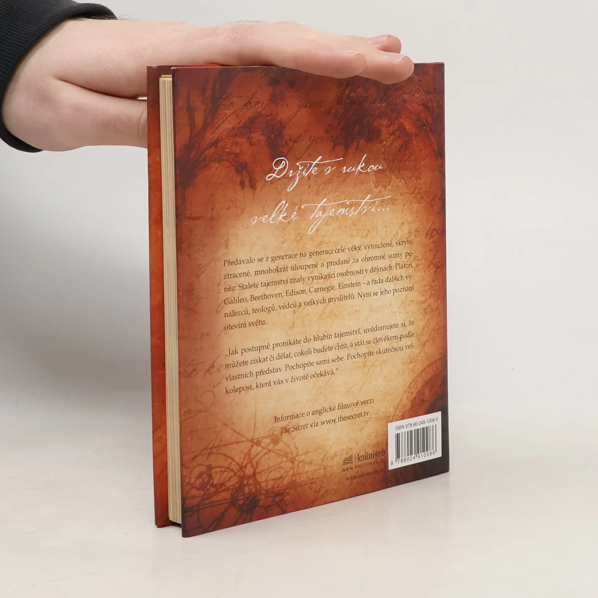 Stojíte na prahu poznání. Fragmenty velkého tajemství se objevují v legendách, mýtech a filozofiích po celá staletí, jen znát tu správnou šifru. Kniha, kterou právě držíte v rukou, shromáždila moudrost předchozích generací a naučí vás dosáhnout všeho, co si přejete - v oblasti peněz, zdraví, vztahů i osobního štěstí. Pochopíte skryté síly, které ve vás dřímají, a odhalíte jejich moc. Učení novodobých mistrů, kteří štěstí, zdraví a bohatství dosáhli, vám ukáže, jak lze tajemství spokojeného života aplikovat na každém kroku.