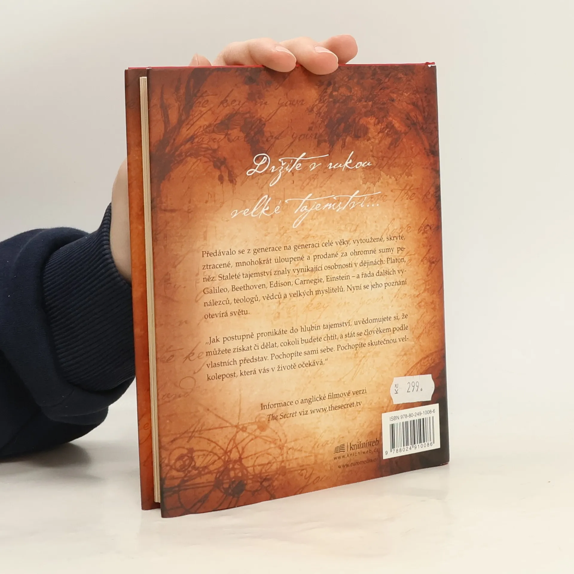 Stojíte na prahu poznání. Fragmenty velkého tajemství se objevují v legendách, mýtech a filozofiích po celá staletí, jen znát tu správnou šifru. Kniha, kterou právě držíte v rukou, shromáždila moudrost předchozích generací a naučí vás dosáhnout všeho, co si přejete - v oblasti peněz, zdraví, vztahů i osobního štěstí. Pochopíte skryté síly, které ve vás dřímají, a odhalíte jejich moc. Učení novodobých mistrů, kteří štěstí, zdraví a bohatství dosáhli, vám ukáže, jak lze tajemství spokojeného života aplikovat na každém kroku.