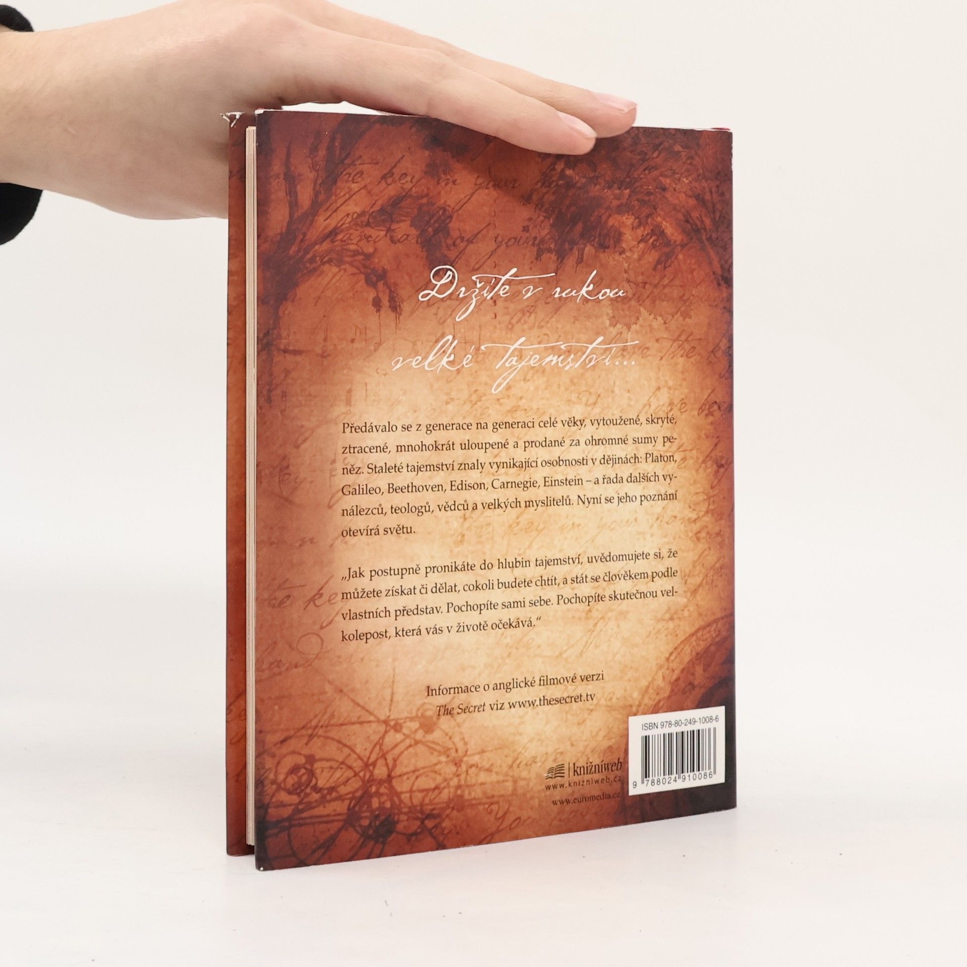 Stojíte na prahu poznání. Fragmenty velkého tajemství se objevují v legendách, mýtech a filozofiích po celá staletí, jen znát tu správnou šifru. Kniha, kterou právě držíte v rukou, shromáždila moudrost předchozích generací a naučí vás dosáhnout všeho, co si přejete - v oblasti peněz, zdraví, vztahů i osobního štěstí. Pochopíte skryté síly, které ve vás dřímají, a odhalíte jejich moc. Učení novodobých mistrů, kteří štěstí, zdraví a bohatství dosáhli, vám ukáže, jak lze tajemství spokojeného života aplikovat na každém kroku.