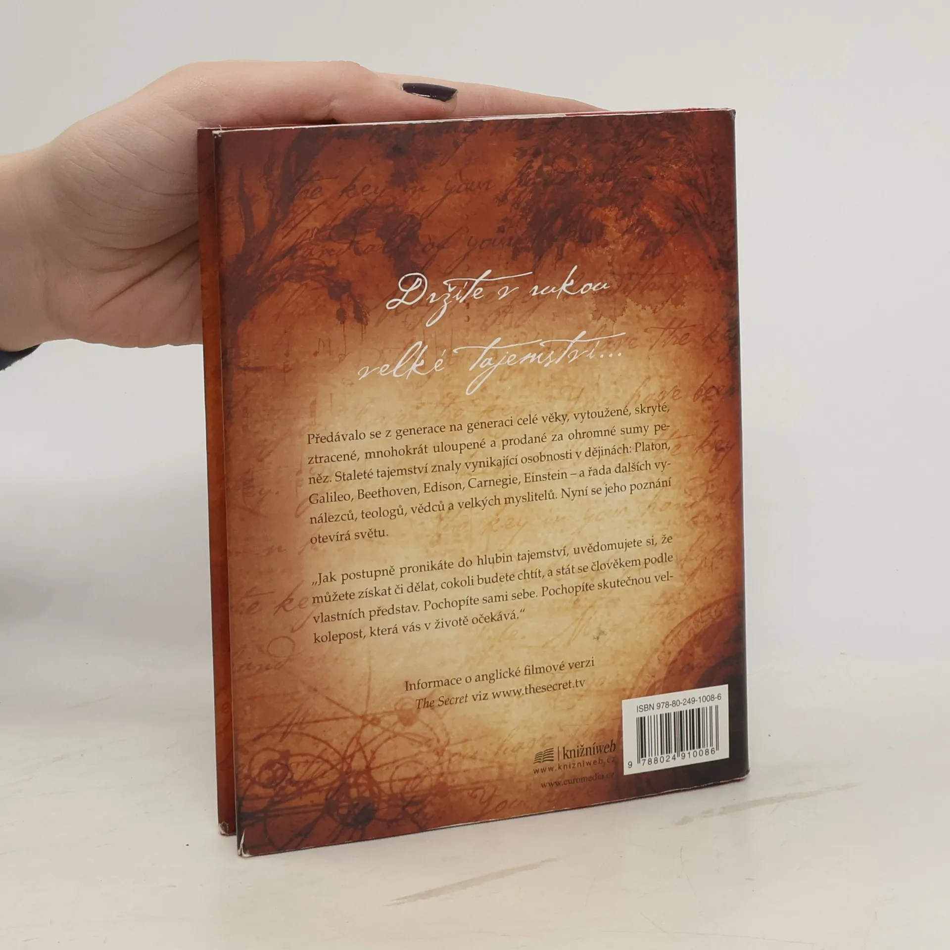 Stojíte na prahu poznání. Fragmenty velkého tajemství se objevují v legendách, mýtech a filozofiích po celá staletí, jen znát tu správnou šifru. Kniha, kterou právě držíte v rukou, shromáždila moudrost předchozích generací a naučí vás dosáhnout všeho, co si přejete - v oblasti peněz, zdraví, vztahů i osobního štěstí. Pochopíte skryté síly, které ve vás dřímají, a odhalíte jejich moc. Učení novodobých mistrů, kteří štěstí, zdraví a bohatství dosáhli, vám ukáže, jak lze tajemství spokojeného života aplikovat na každém kroku.