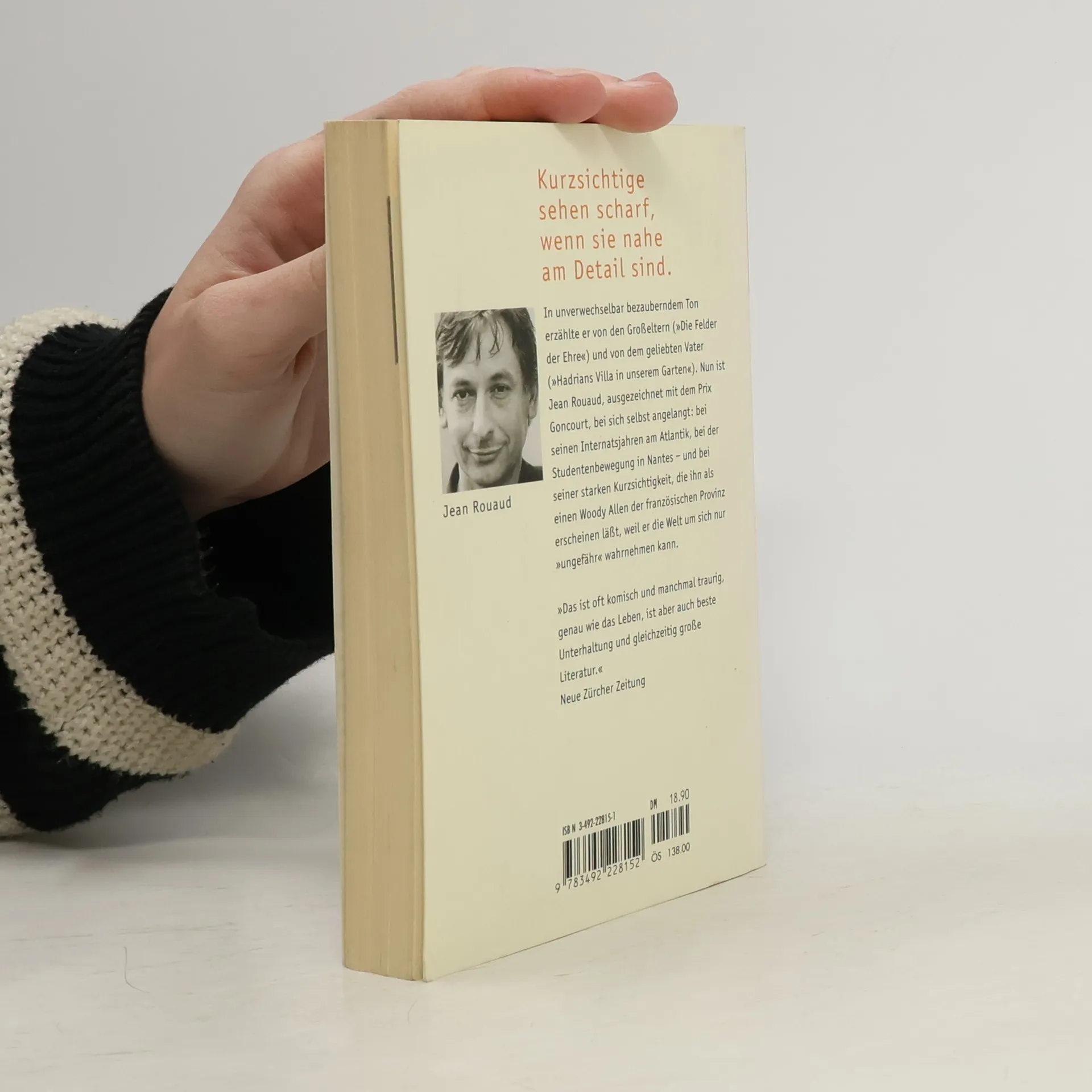 Nach seinen ersten beiden Romanen "Die Felder der Ehre" und "Hadrians Villa in unserem Garten" erzählt Jean Rouaud auch in diesem dritten Buch seine persönliche Geschichte fort. Mit dem ihm eigenen leisen Humor und unverkennbarer Selbstironie porträtiert er sich selbst als eine Art Woody Allen der französischen Provinz, extrem kurzsichtig und daher die Welt um sich herum nur "ungefähr" wahrnehmend.