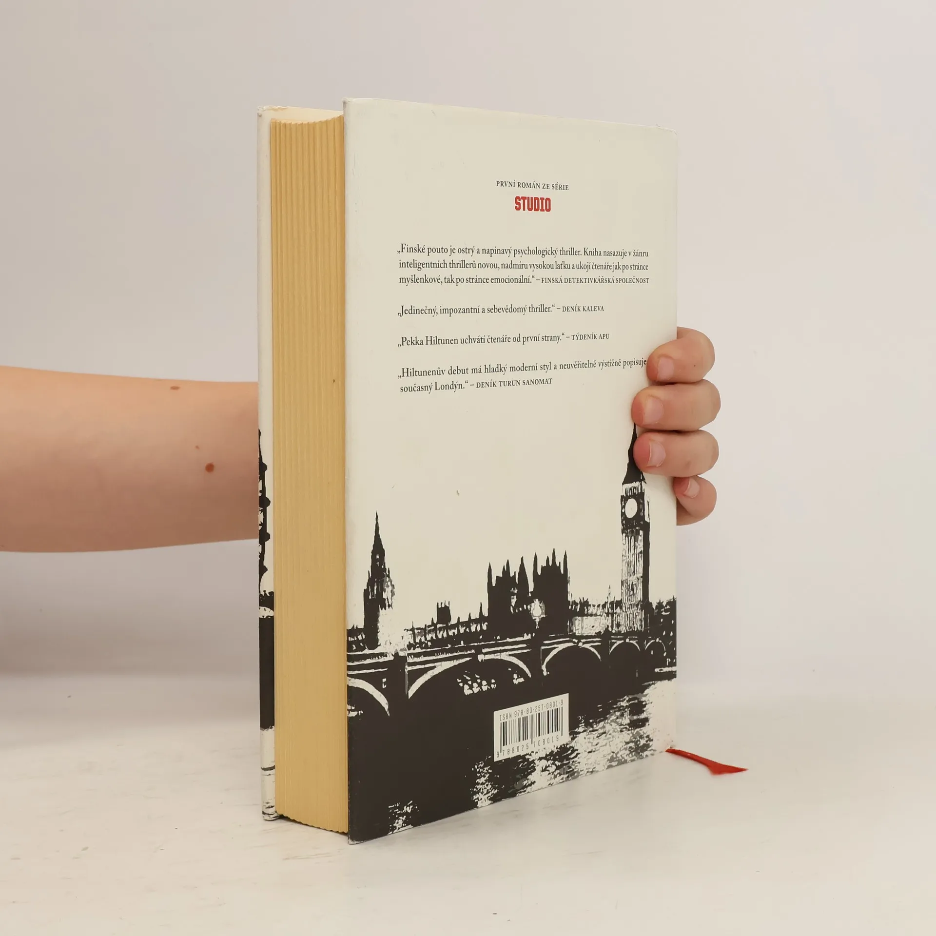 Finská grafička Lia žije osaměle v Londýně a jen těžko se seznamuje s novými lidmi. Když však poprvé v životě spatří oběť vraždy a potká okouzlující krajanku Mari, její život nabere dramatické obrátky – Mari má výjimečnou schopnost „číst lidi“, vidět v nich víc než ostatní, a proto pracuje v tajemném Studiu na Bankside, které občas bere spravedlnost do vlastních rukou a bojuje proti nebezpečným politikům či mafiánským gangům. Lia spolu s Mari nevěřícně vstupuje do zločinného podsvětí – dokáže včas rozlousknout záhadu, co je Mari zač a proč se s Liou vlastně spřátelila? Finské pouto je podmanivě vystavěný psychologický thriller ze současného Londýna. Kniha ve Finsku zaznamenala nebývalý úspěch u odborné i laické veřejnosti. Pekka Hiltunen, původní profesí novinář, získal za tento románový debut v roce 2012 ocenění Vuoden johtolanka za nejlepší kriminální román, cenu Stopa roku od Finské detektivkářské společnosti a od nakladatelstvím Gummerus cenu za nejúspěšnější knihu roku. Finské pouto bylo též nominováno na prestižní cenu deníku Helsingin Sanomat jako debut roku. Kniha si rychle získala pozornost i v zahraničí, v současnosti je překládána do francouzštiny, polštiny a češtiny.