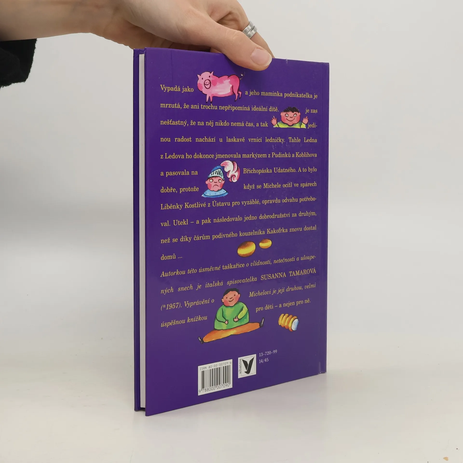 Vypadá jako malý tlusťoučký čuník a jeho maminka podnikatelka je mrzutá, že ani trochu nepřipomíná ideální dítě. Michele je zas nešťastný, že na něj nikdo nemá čas, a tak jedinou radost nachází u laskavě vrnící ledničky. Tahle Ledna z Ledova ho dokonce jmenovala markýzem z Pudinků a Koblihova a pasovala na rytíře Břichopáska Udatného. A to bylo dobře, protože když se Michele ocitl ve spárech Liběnky Kostlivé z Ústavu pro vyzáblé, opravdu odvahu potřeboval. Utekl - a pak následovalo dobrodružství jedno za druhým.