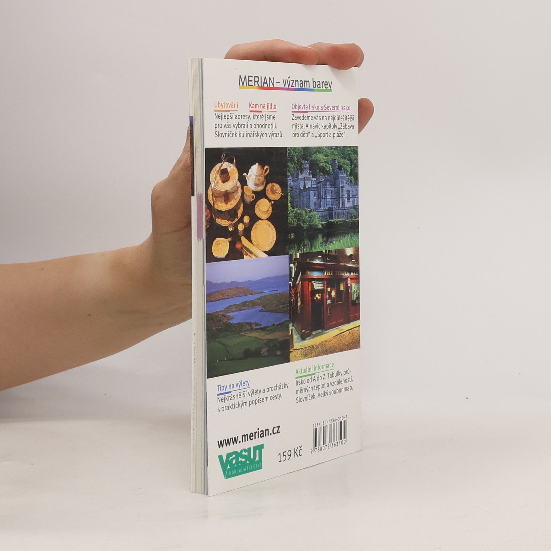 Sytá zeleň a divoké pobřeží, zlatožluté písečné pláže a osamělá vřesoviště, puby s nezaměnitelnou atmosférou a strhující muzika - to jsou hlavní magnety, kterými tento "Zelený ostrov" turisty přitahuje. Nám, Čechům, je Irsko sice v mnohém blízké, avšak vzdálenost, která nás dělí, způsobuje "informační šum" - a právě MERIAN live! nabízí spolehlivé rámě, které vás provede tímto mytickým severozápadním koutem kontinentu. Budete vědět, co vás čeká, vypravíte-li se na Rock of Cashel, "irskou akropoli"; stanete-li na okraji Cliffs of Moher; ocitnete-li se v drsné connemarské krajině, vyladěné do modré a zelené, hnědé a šedé barvy; odhodláte-li se objevovat dosud neznámá mistrovská díla přírody i člověka v Severním Irsku; zastavíte-li se na "pivko" v pověstných dublinských hospůdkách s pěnivým guinnessem... MERIAN live! vás nenechá na holičkách ani při hledání vhodného ubytování a nabídne ke každému místu vhodný hotel či adresu Bed&Breakfast; při výběru turistických tras vás nasměruje mj. na romantickou plavbu po řece Shannon a samozřejmě poradí při nákupu suvenýrů - například, kde výhodně pořídit pletený svetr s typicky irskými vzory. Snad bez výjimky každý - muzikant, hledač záhad, romantik, milovník nedotčené přírody či poutník po stopách dávné historie - si v Irsku najdete ten svůj "zlatý hřeb", za nímž se na "Zelený ostrov" vypraví.