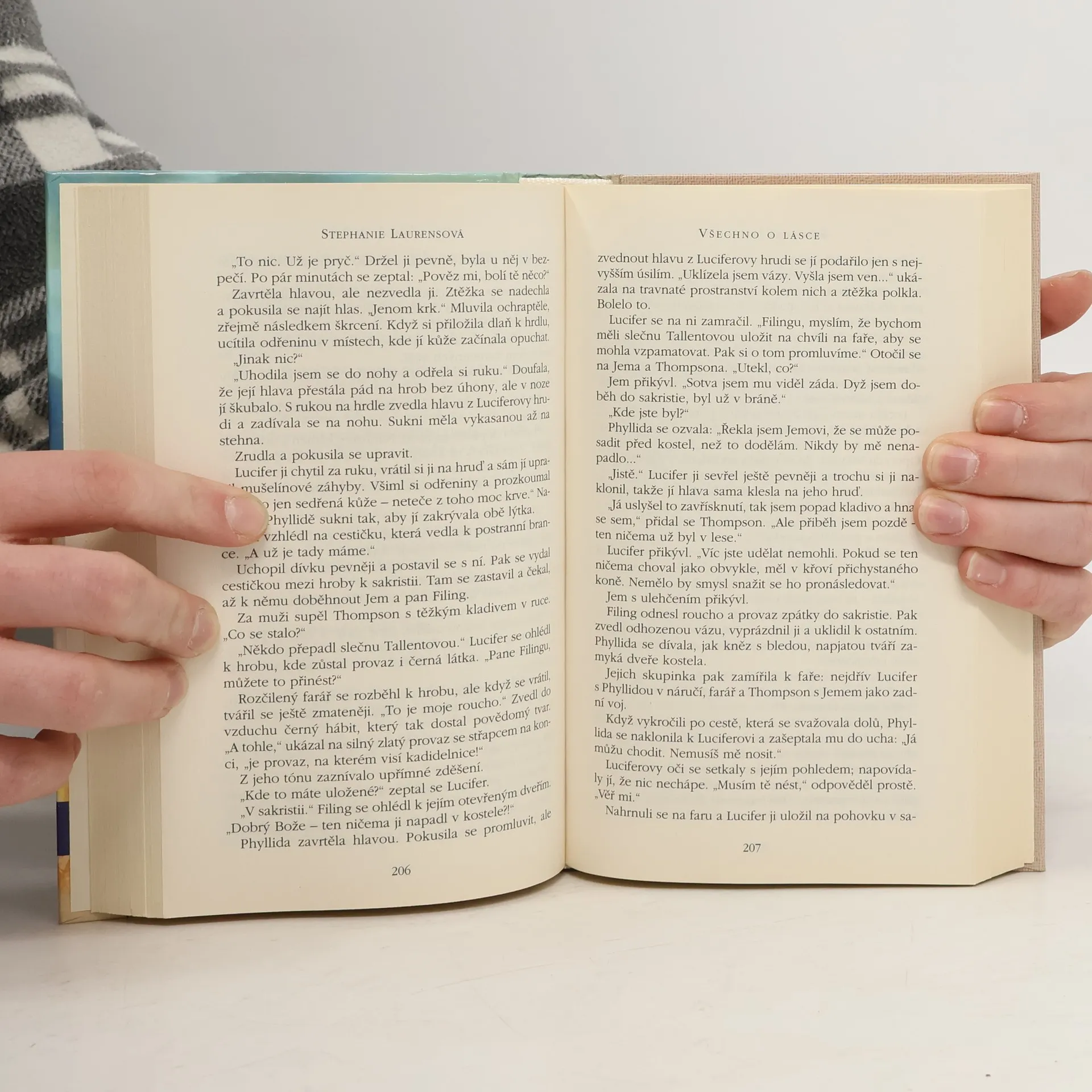 Romance z oblíbené knižní řady o rodu Cynsterů. Lucifer je posledním z Cynsterů, koho nedostihla mocná kletba – totiž že se ožení šťastně a z lásky. Lucifer se ženit nehodlá, život londýnského hejska mu totiž nadmíru vyhovuje. Aby unikl ze spárů vdavekchtivých dam, vydá se na colytonské panství za přítelem Horatiem. Toho však krátce po příjezdu nalezne zavražděného na podlaze knihovny a sám je omráčen a sražen k zemi. Nezaútočil však na něj lstivý vrah, ale nešikovná ručka Phillidy, krásné dcery místního vyšetřovatele. Ještě než náhodou upustila halapartnu na hlavu neznámého krasavce, stala se svědkem vraždy…