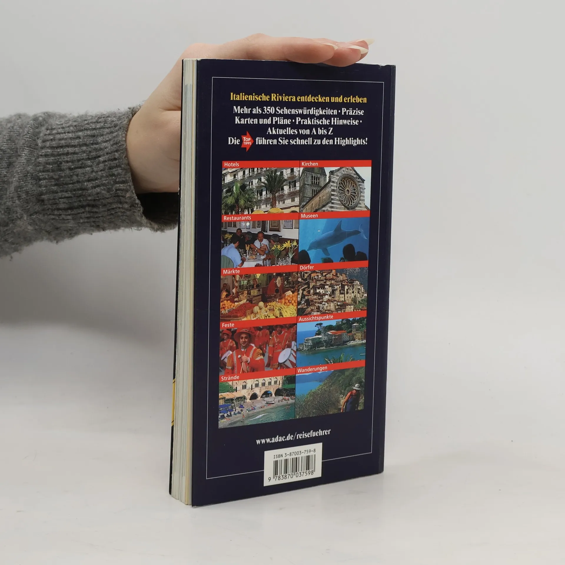 Ein informativer Führer, der die Italienische Riviera in 3 Kapiteln (Genua, Riviera di Levante, Riviera di Ponente) mit Orten und Sehenswürdigkeiten vorstellt.